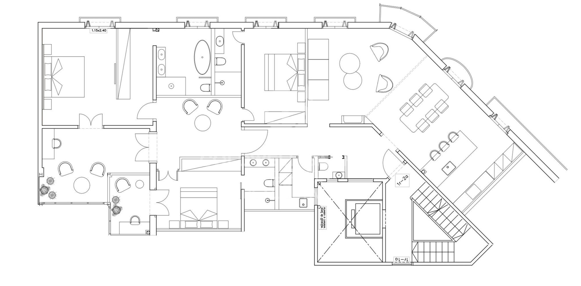 L'agencement a été soigneusement pensé pour garantir confort et espace. L'espace de jour comprend un salon-salle à manger spacieux et lumineux avec une cuisine ouverte, entièrement équipée avec des électroménagers haut de gamme, et un accès à un balcon. Dans l'espace nuit, on trouve une grande suite parentale donnant sur la rue, reliée à un bureau privé, idéal pour le télétravail. De plus, une deuxième suite extérieure avec son propre bureau ainsi qu'une troisième chambre intérieure en suite complètent cet espace. L'appartement dispose également d'un WC invité et d'une buanderie pratique.