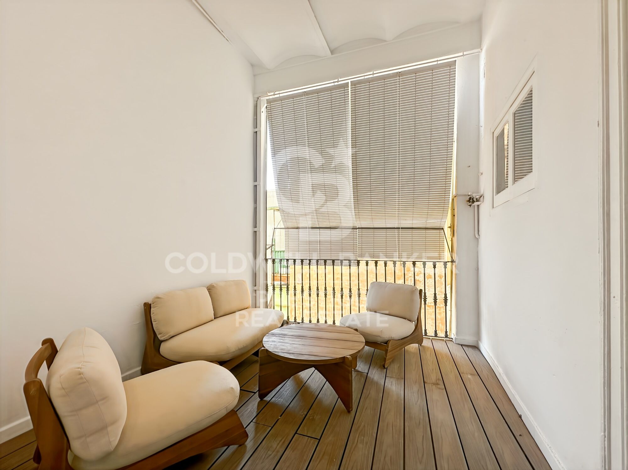 Découvrez un logement plein de charme en pleine Gran Via, où l'authenticité historique s'allie parfaitement à une rénovation moderne et soignée. Situé au cinquième étage, cet appartement a été restauré avec attention, préservant ses éléments d'origine tout en répondant aux exigences de la vie actuelle. Les plafonds hauts de 3,7 mètres offrent une luminosité exceptionnelle et une agréable sensation d'espace. Les sols en mosaïque hydraulique, soigneusement conservés, apportent couleur et caractère à chaque pièce. La rénovation complète marie matériaux contemporains et détails architecturaux classiques, créant une atmosphère harmonieuse et confortable. Grâce à sa double orientation, le logement bénéficie d'une lumière naturelle permanente et d'une excellente ventilation croisée. Les pièces principales donnent sur la Gran Via, offrant une vue privilégiée sur l'animation du centre-ville. À l'arrière, une terrasse couverte propose un véritable havre de paix, idéal pour se détendre, prendre un café ou profiter d'un moment de tranquillitéun avantage rare dans un emplacement aussi central. Chaque aspect de l'appartement a été pensé pour offrir confort, fonctionnalité et qualité de vie. Que vous aimiez recevoir sous les hauts plafonds ou vous isoler sur votre terrasse privée, ce logement réunit luminosité, charme et confort au cur de l'un des quartiers les plus emblématiques de Barcelone. Contactez-nous pour plus d'informations ou pour organiser une visite. #ref:CBES2747 (2)
