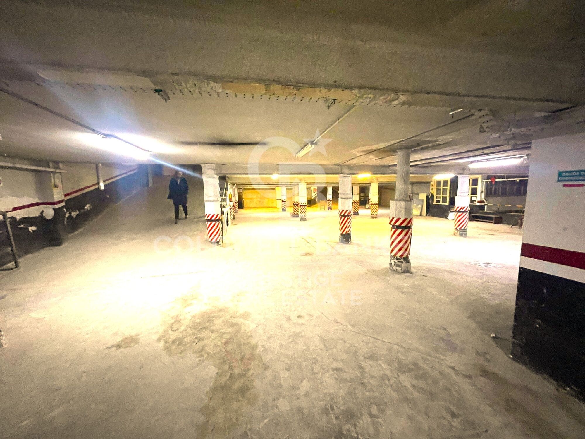 El edificio ene más de 20 mts de fachada con cuatro puertas de entrada y de salida, para los vehículos a la Gran Via de les Corts Catalanes, que ene gran afluencia de tráfico durante todo el día.