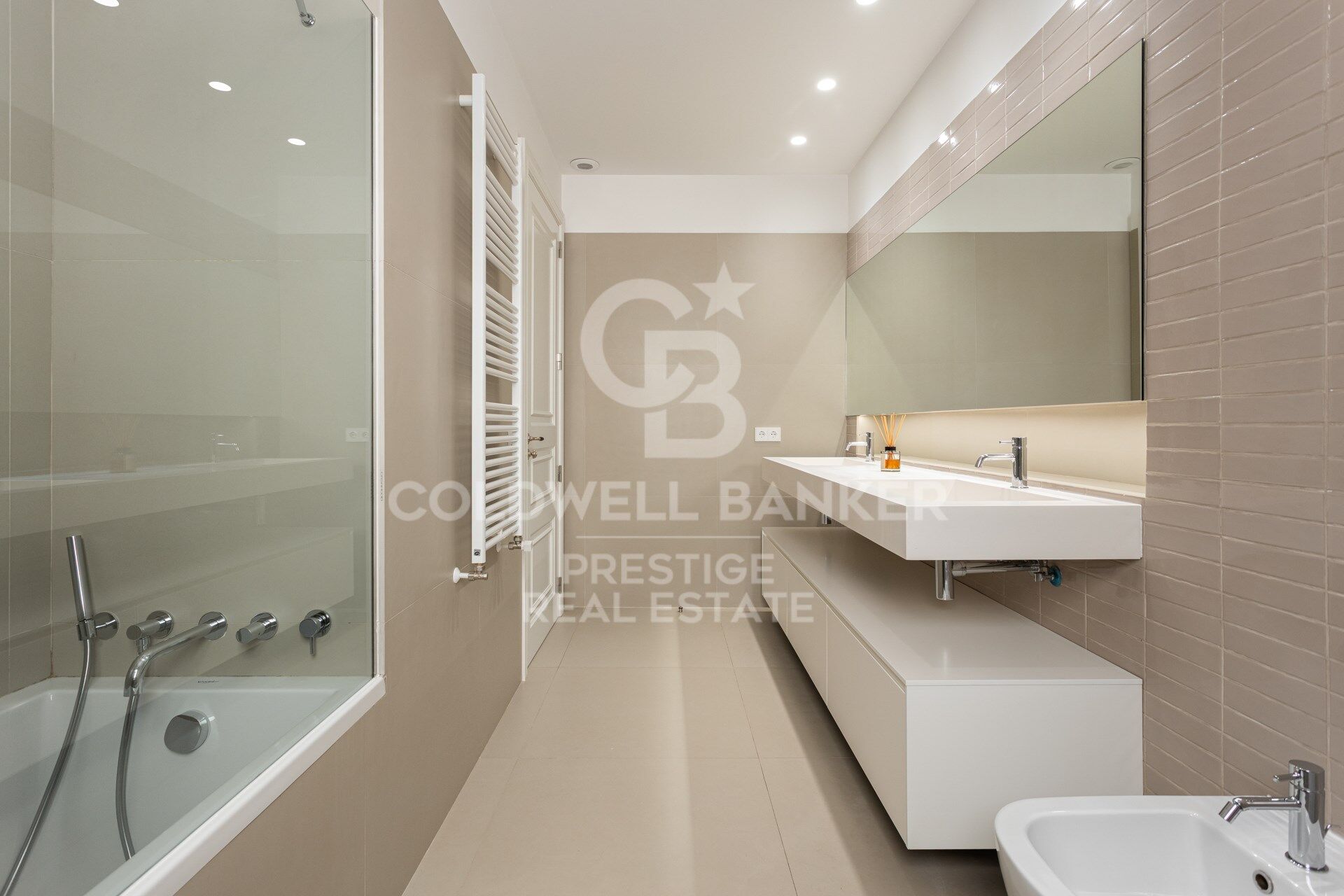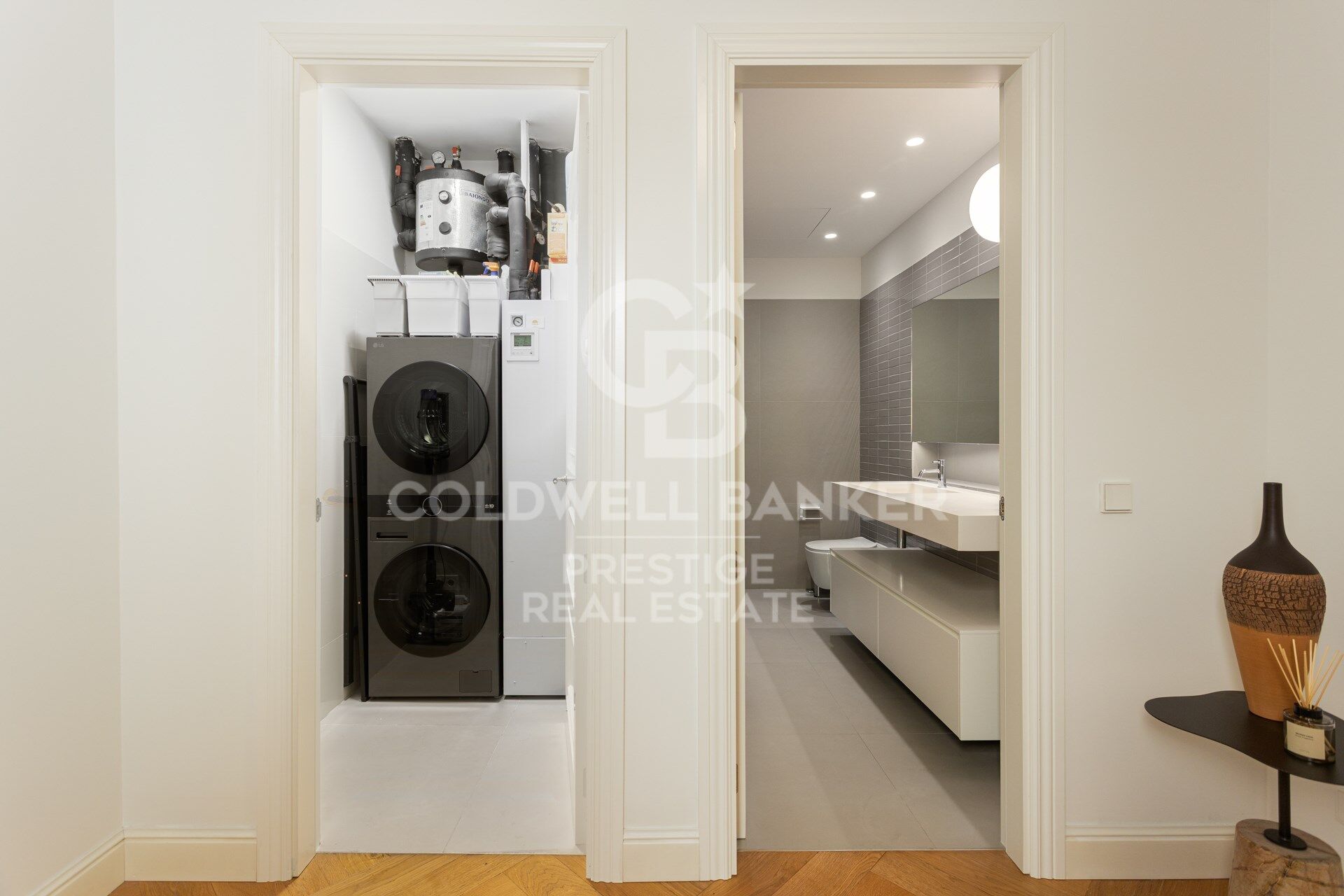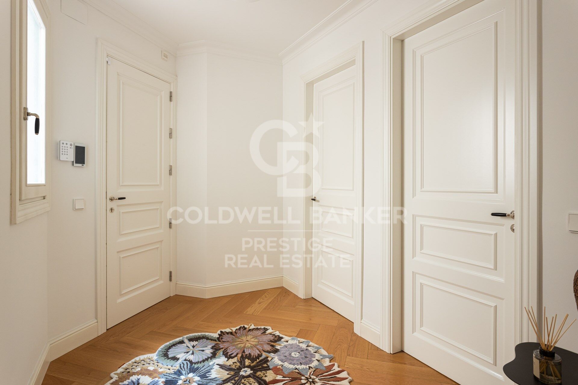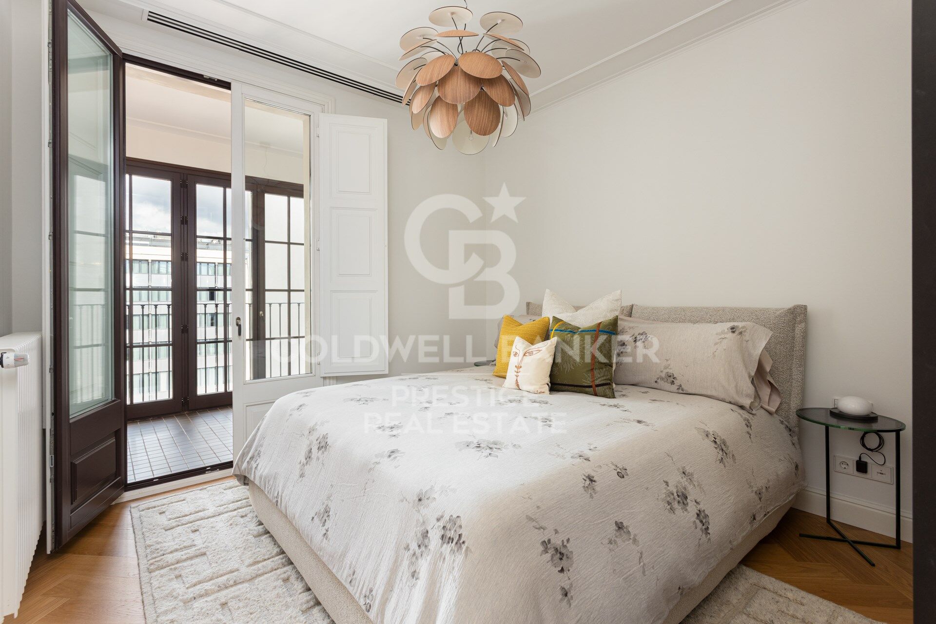 L'appartement se déploie dans un généreux espace de vie, vaste, ouvert et baigné de lumière naturelle grâce aux grandes baies vitrées offrant des vues dégagées sur l'une des avenues les plus emblématiques de Barcelone.
