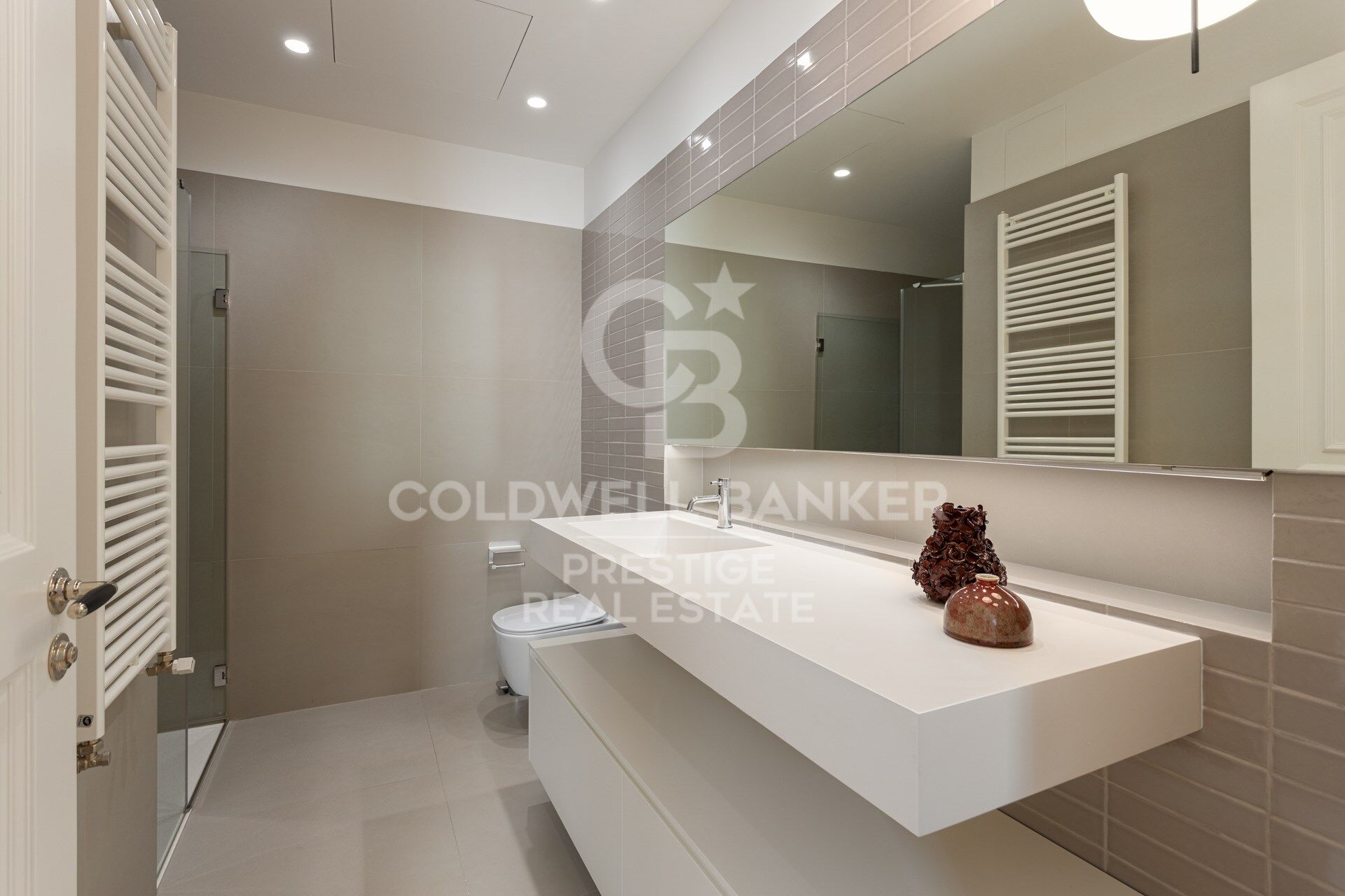 L'appartement se déploie dans un généreux espace de vie, vaste, ouvert et baigné de lumière naturelle grâce aux grandes baies vitrées offrant des vues dégagées sur l'une des avenues les plus emblématiques de Barcelone.