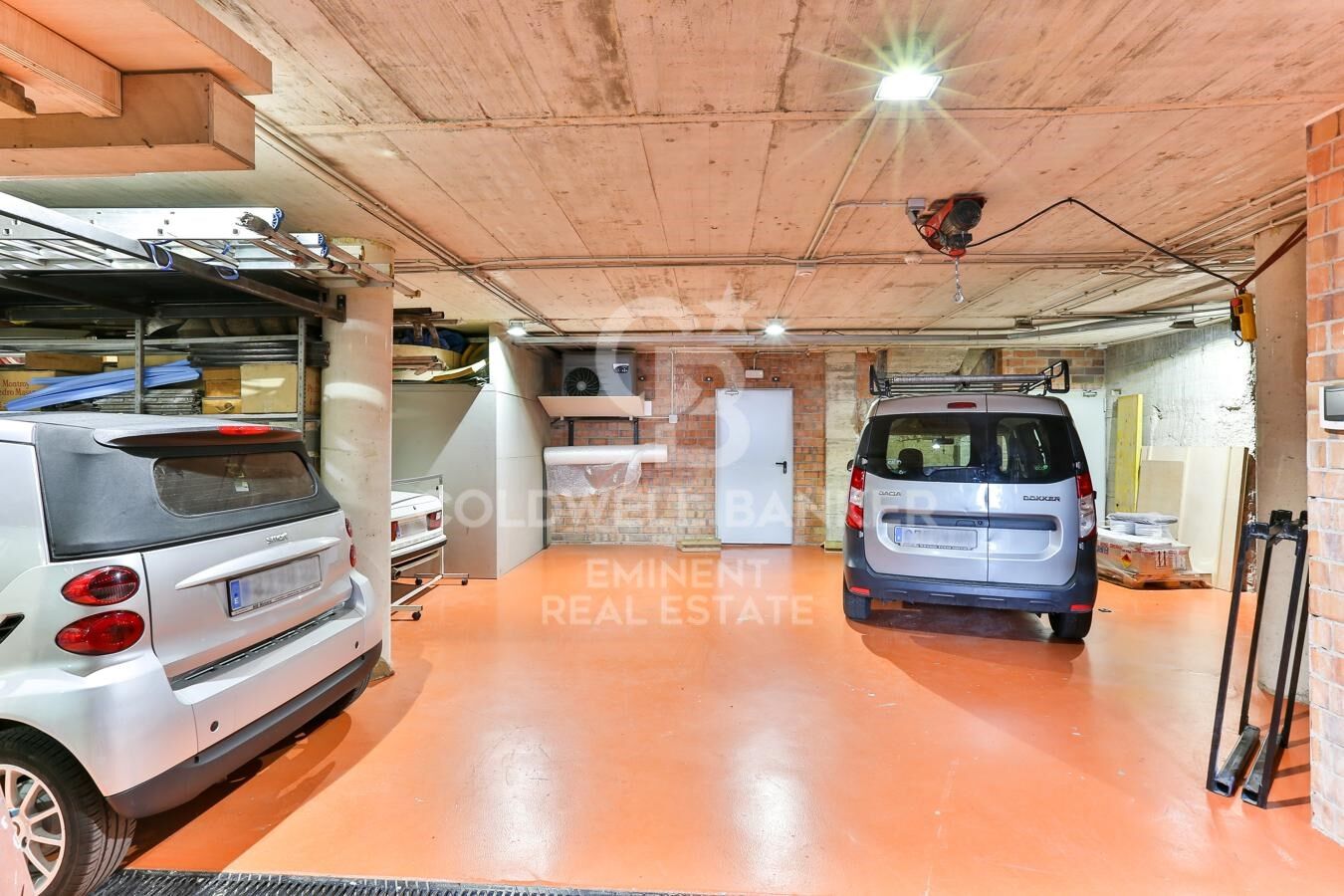 Le sous-sol dispose d'une cave par laquelle on accède à deux ateliers où les propriétaires rangent leurs outils et leurs matériaux de travail, ainsi qu'au parking pouvant accueillir quatre voitures.