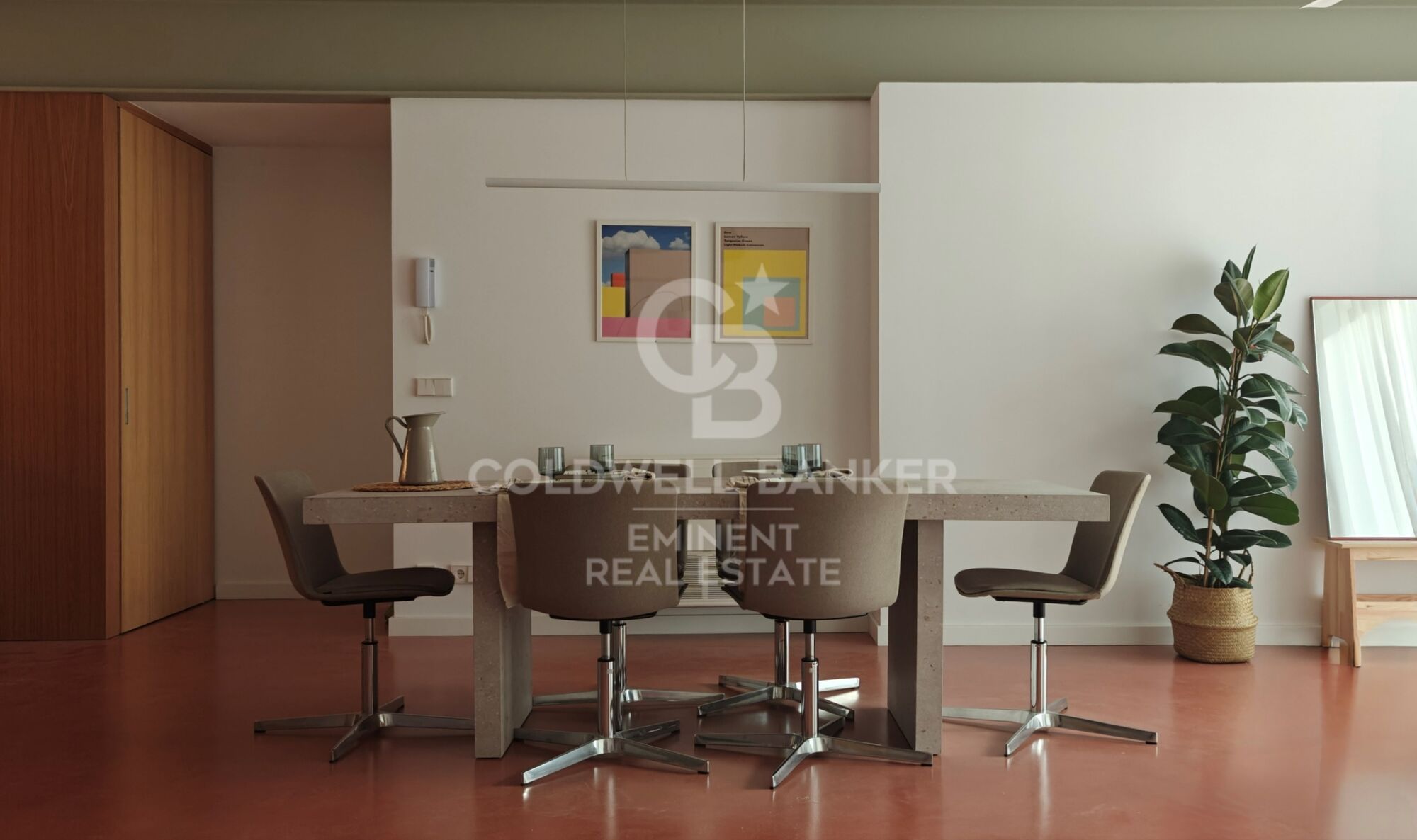 Acceso desde la calle a un amplio recibidor que desemboca en el espectacular espacio abierto de salón-comedor-cocina, totalmente diáfano gracias a la estructura de vigas de hierro sin columnas y a la ausencia de pasillos, optimizando cada metro útil. La zona de noche se organiza en tres habitaciones dobles la principal con baño en suite y un segundo baño completo que da servicio al resto de estancias.