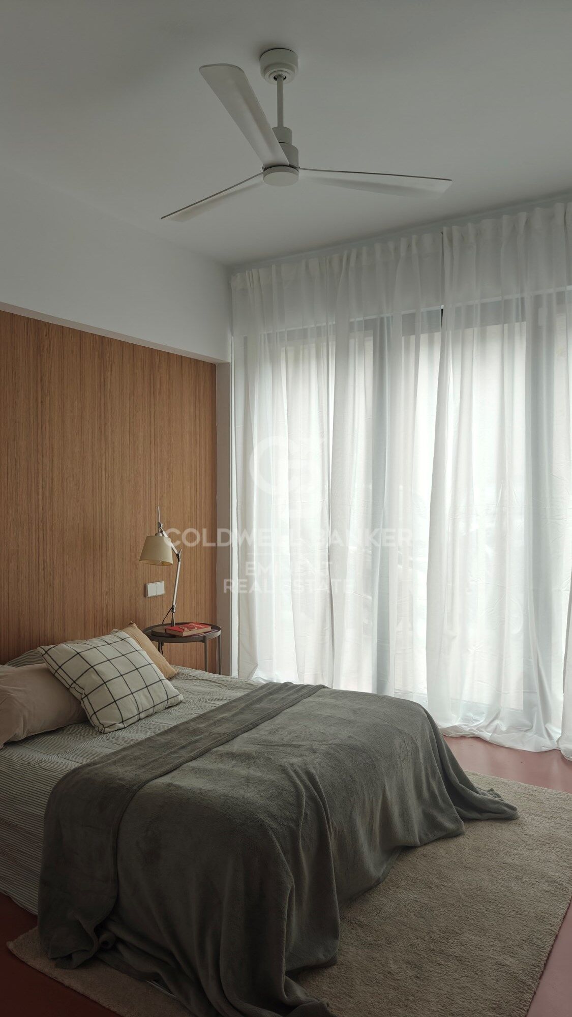 La vivienda combina materiales nobles y soluciones contemporáneas: pavimento continuo de microcemento, carpinterías y aplacados en roble natural, iluminación integrada y cocina con líneas puras y panelado de electrodomésticos. Climatización y ventilación reforzada con ventiladores de techo. Cierres de seguridad (rejas y persianas metálicas en dormitorios) y puerta blindada. Ventanas de aluminio premium con vidrio con filtro solar para mayor confort térmico y luminoso.