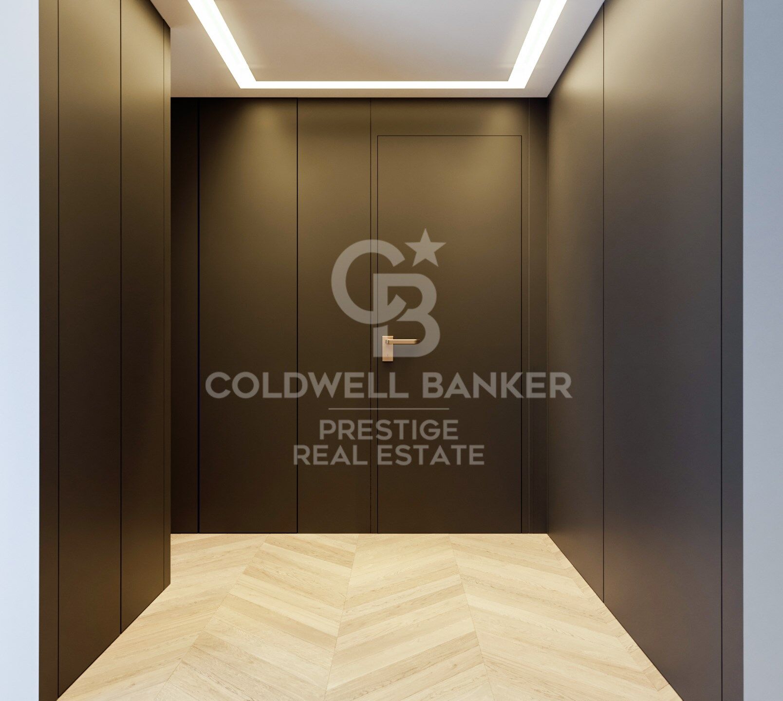 Les multiples détails, tels que les lambris en bois dans les couloirs et certaines pièces, les carreaux de sol et de mur en porcelaine de grand format à effet microciment et/ou le parquet collé en format chevron avec une couche supérieure en bois de chêne, ainsi que les installations basées sur l'efficacité énergétique (chauffage par le sol, climatisation), l'alarme et les télécommunications, c'est-à-dire ce qui précède, ainsi que l'aménagement de la terrasse, décrivent parfaitement un projet très développé du point de vue de l'aménagement intérieur et du confort.