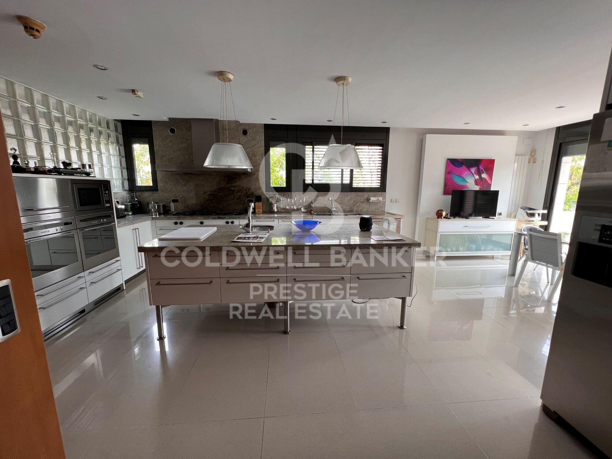 La propriété n'est pas seulement un hommage à la beauté intérieure, mais aussi à l'aspect pratique. Avec un parking généreux pouvant accueillir jusqu'à six véhicules, le stationnement ne sera jamais un problème. Depuis le confort de cette maison, on peut profiter de vues panoramiques sur la captivante ville de Barcelone, un rappel constant de l'emplacement pratique de la propriété.