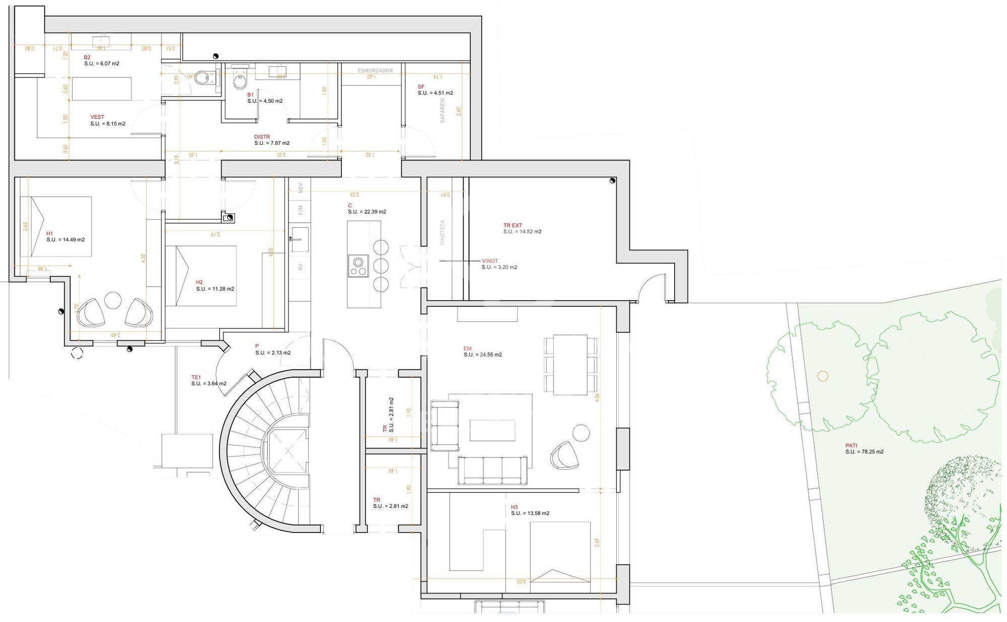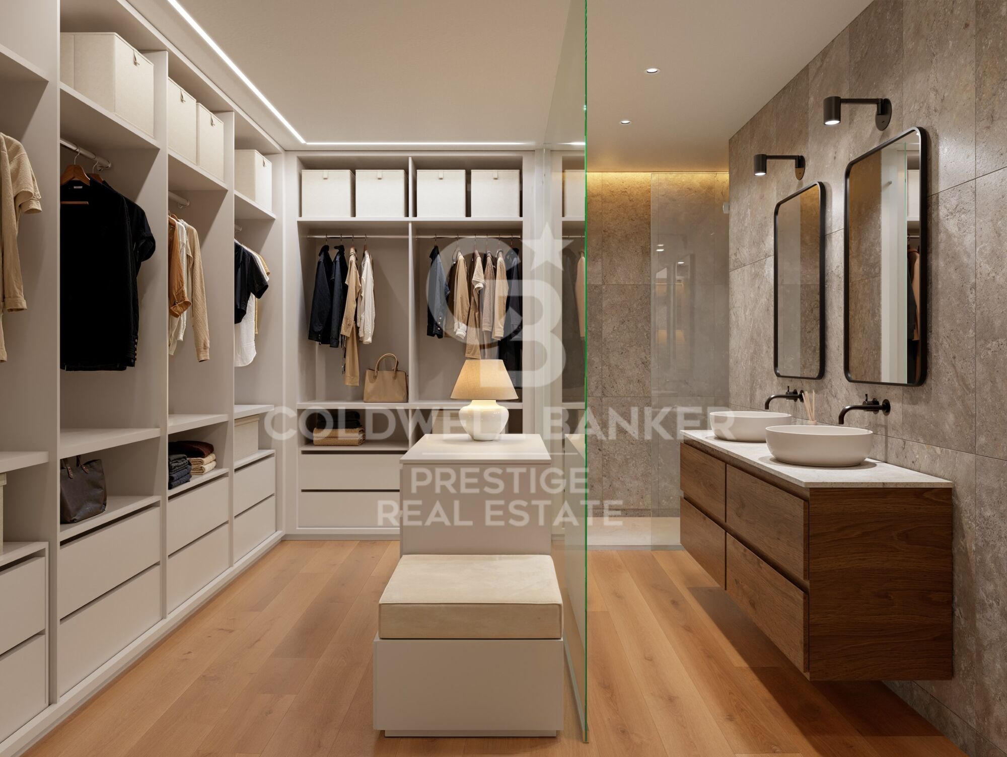 Situé dans l'une des zones les plus privilégiées de Barcelone, près de la Plaza Francesc Macià, cet appartement haut de gamme offre une distribution spacieuse et fonctionnelle. La propriété dispose de 152,29 m², offrant une suite principale avec dressing, deux chambres doubles supplémentaires, un bureau, deux salles de bains complètes, un WC de courtoisie, un grand salon-salle à manger et une cuisine entièrement équipée attenante au salon. De plus, elle dispose d'une pratique buanderie. Cet élégant appartement a été rénové avec des matériaux de haute qualité et des finitions de luxe. Les espaces ont été soigneusement conçus avec une distribution pratique et intelligente qui sépare les zones de repos des zones de cuisine et de salle à manger, offrant une intimité incomparable. Les grands espaces, tous dotés de grandes fenêtres, permettent à la lumière naturelle d'inonder chaque recoin, créant une atmosphère lumineuse et accueillante. Le salon-salle à manger, d'une surface de 31,72 m², est l'un des espaces les plus agréables, avec deux grandes fenêtres qui inondent l'espace de lumière naturelle, et les plafonds ornés d'une voûte catalane plâtrée qui ajoute une touche d'élégance classique. La cuisine est équipée des derniers appareils électroménagers, tandis que les parquets stratifiés en chêne naturel et les tons beige et bois naturel apportent chaleur et confort à chaque espace. Les chambres, éloignées des espaces communs, assurent un refuge tranquille. La chambre principale, d'une superficie de 15,52 m², est une suite qui comprend un dressing et une salle de bains privée. Les finitions de haute qualité, telles que le parquet stratifié en chêne naturel, procurent une sensation de chaleur et d'élégance. La suite est équipée de placards sur mesure, de portes laquées et de fenêtres au style minimaliste avec rupture de pont thermique, assurant à la fois confort et efficacité énergétique. Les deux chambres doubles sont spacieuses et lumineuses, grâce aux grandes fenêtres qui laissent entrer la lumière naturelle. Ces chambres partagent une salle de bain complète équipée de robinetteries encastrées en noir mat, de receveurs de douche en résine et de pavés en grès cérame effet microciment, alliant fonctionnalité et design moderne et élégant. Avec un système de chauffage individuel par radiateurs en aluminium, le foyer offre une atmosphère chaude et accueillante en hiver. En été, le système de climatisation par conduit, avec une pompe à chaleur à haute efficacité, maintient l'espace frais et confortable. Ce système polyvalent permet de régler la température de chaque pièce de manière indépendante, garantissant un confort tout au long de l'année et réduisant les émissions de CO2. #ref:CBES2365