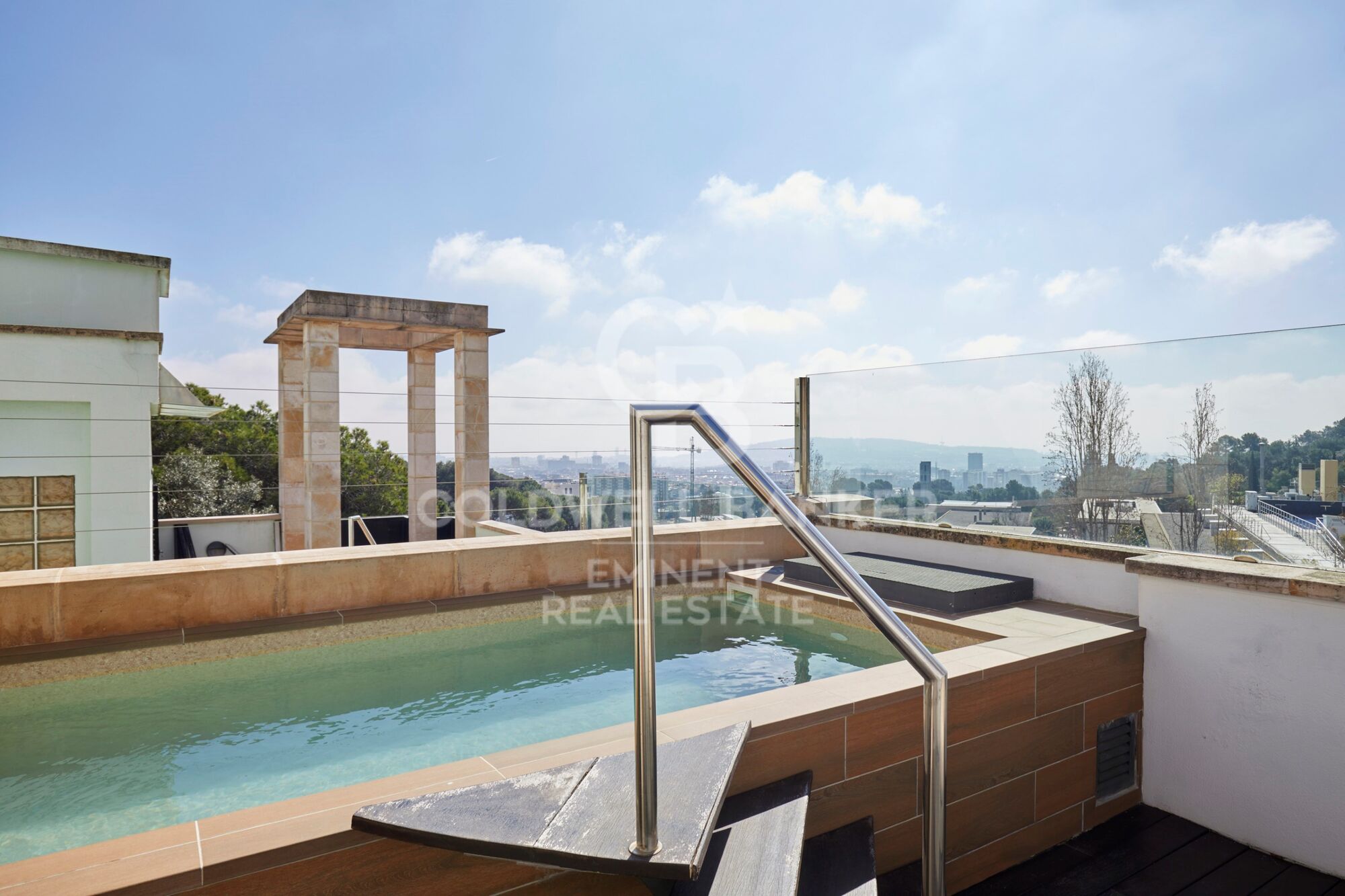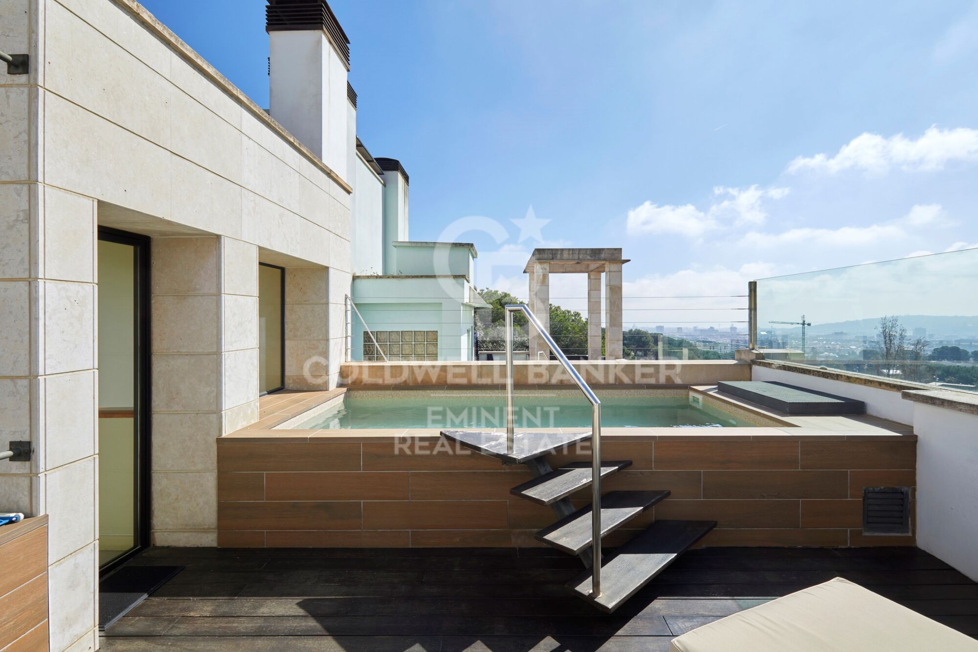 Le plus grand atout de cette propriété se trouve au dernier étage : couronnant la maison, on accède à un oasis privé avec piscine et solarium, un espace de déconnexion totale offrant des vues panoramiques à 360º sur la skyline de Barcelone et la Méditerranée. Cet emplacement au niveau le plus élevé assure un ensoleillement direct toute la journée et une visibilité ininterrompue.