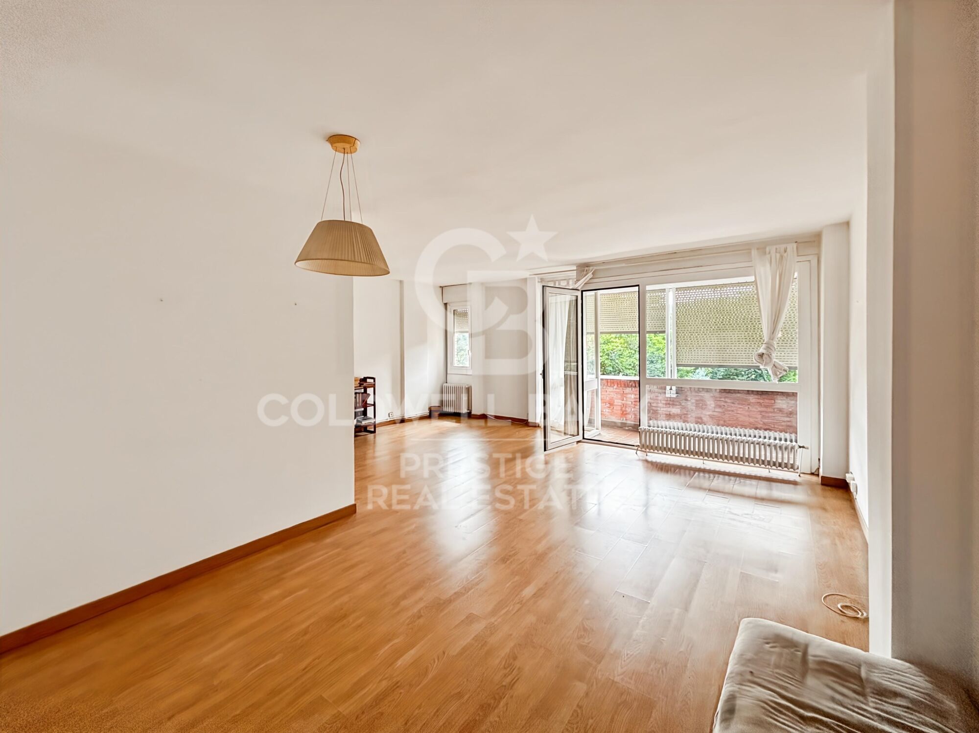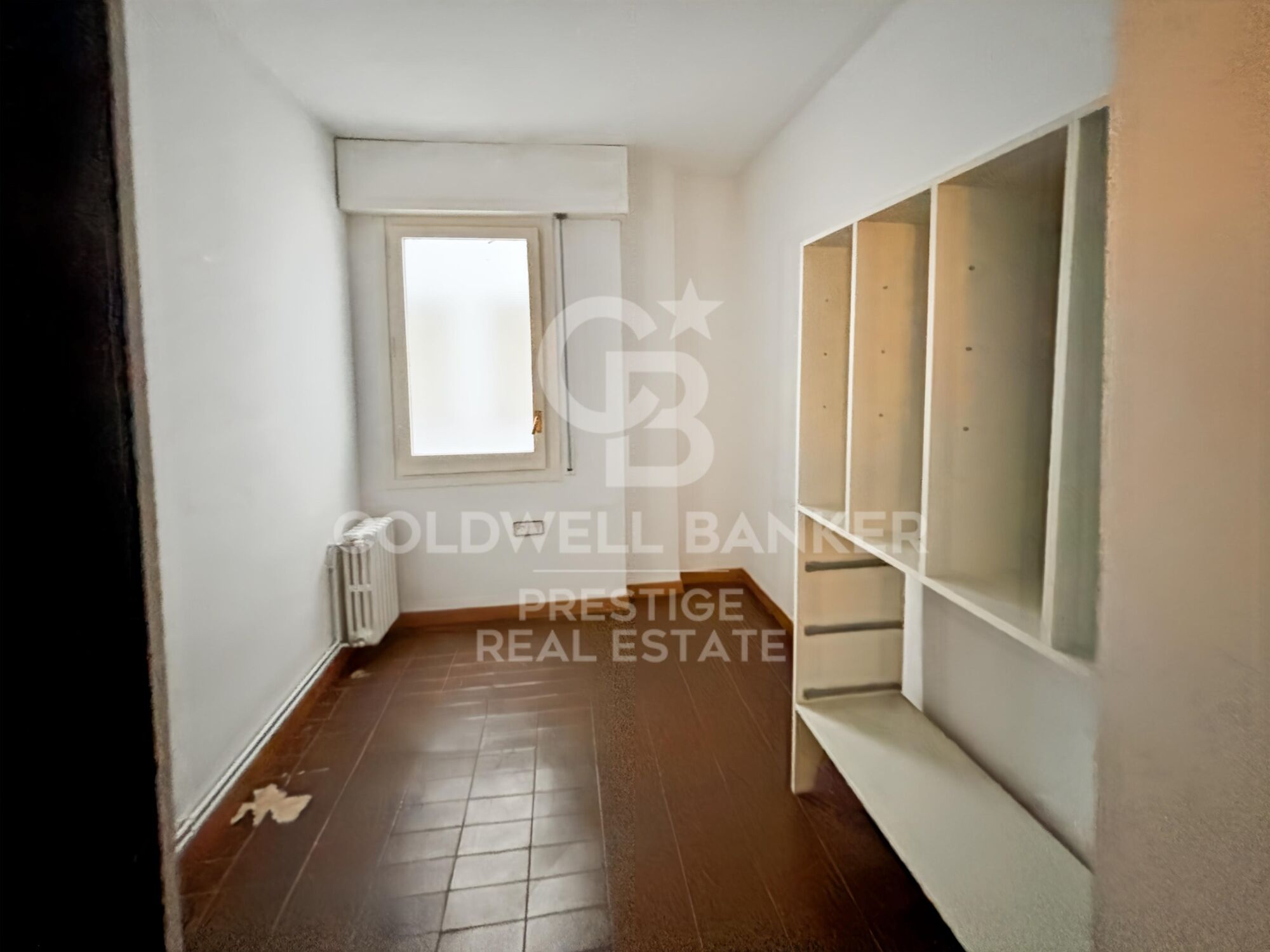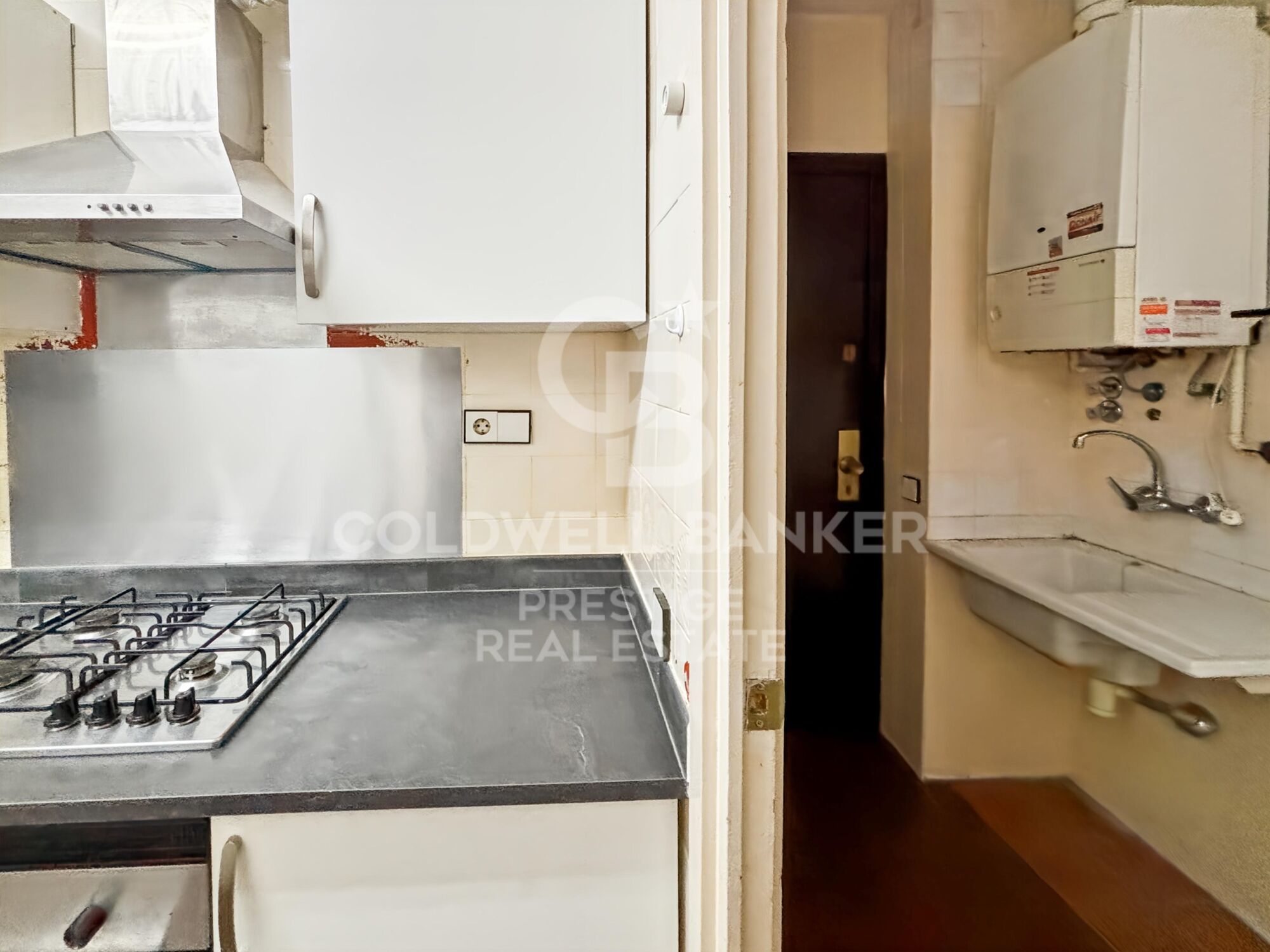 Le salon est spacieux et lumineux, avec un accès direct au Passeig de Sant Gervasi et une jolie terrasse ensoleillée d'environ 10 m². Tous les murs intérieurs sont des cloisons, permettant une redistribution personnalisée de l'espace.