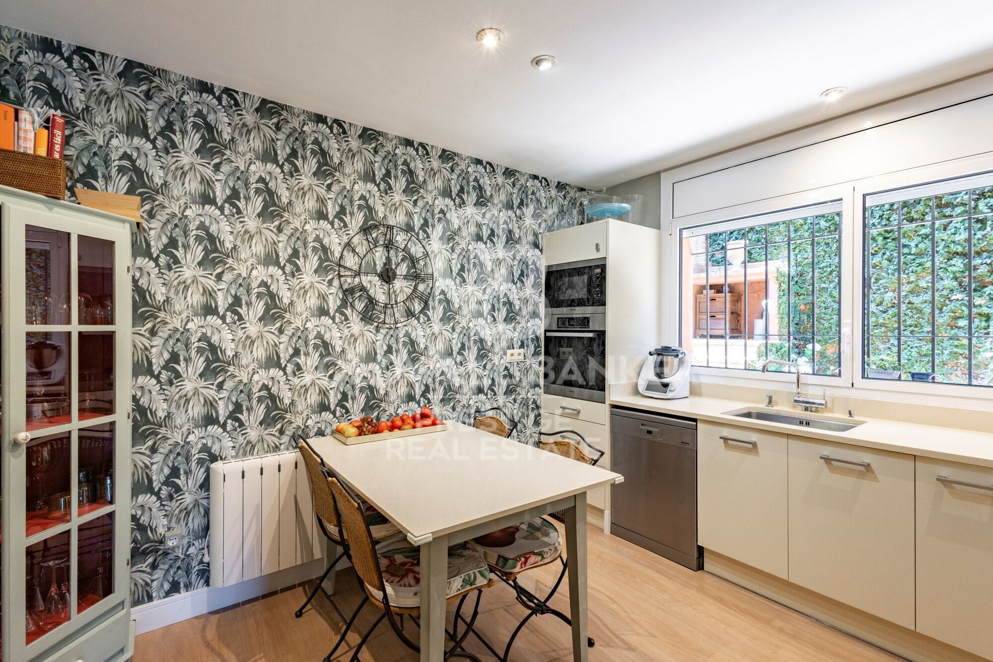 Ce niveau comprend également des toilettes de courtoisie, une grande cuisine avec plans de travail en Silestone et une buanderie équipée de lave-linge, sèche-linge et rangements supplémentaires.