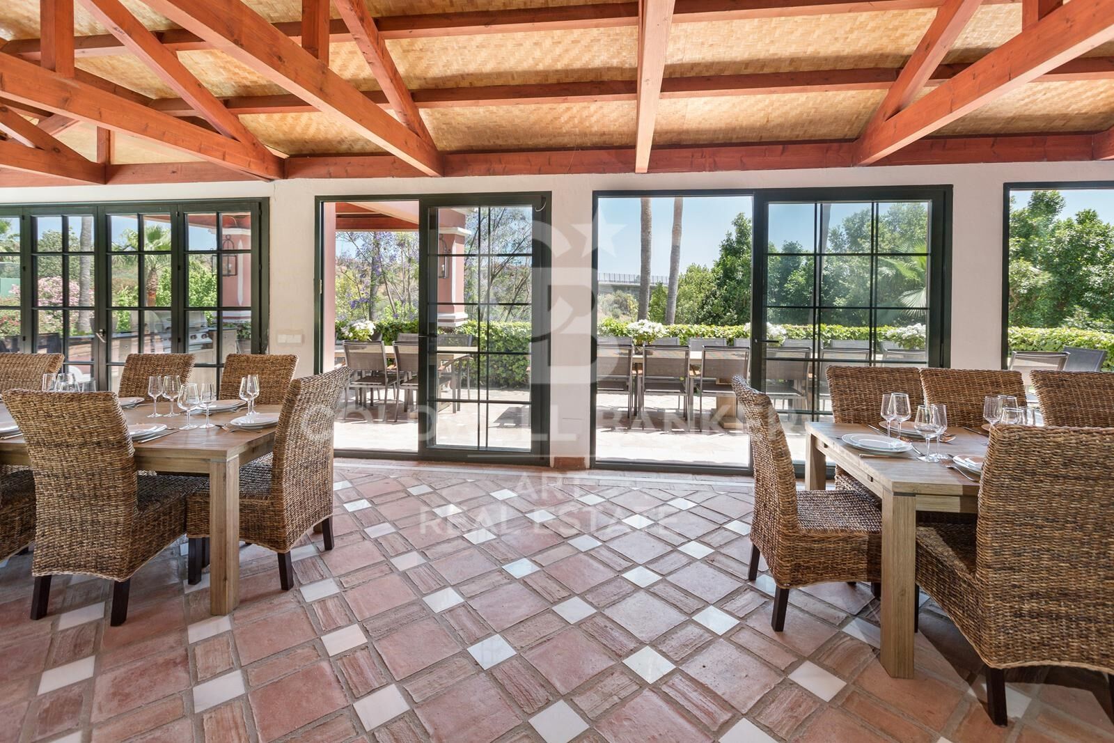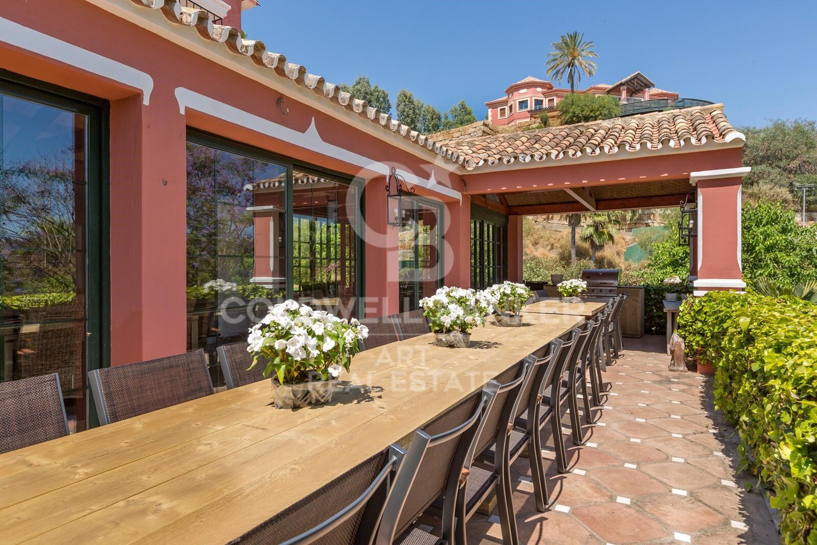 La propriété offre près de 1 000 m² d'espace de vie magnifiquement conçu, entourée de jardins impeccablement entretenus et de vues sereines sur les montagnes. Les intérieurs mêlent luxe contemporain et charme andalou intemporel, avec des pièces baignées de lumière, des espaces de vie généreux et des salons sophistiqués conçus à la fois pour la détente et la réception.