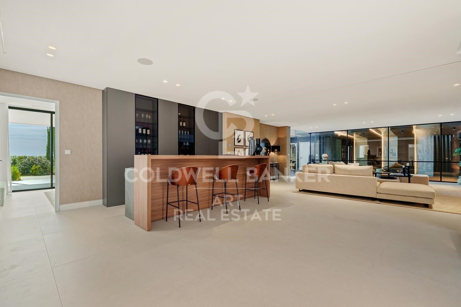 Conçue autour d'un plan ouvert, la villa relie harmonieusement les espaces de vie, de repas et de cuisine aux vastes terrasses. De grandes baies vitrées toute hauteur renforcent le lien entre l'intérieur et l'extérieur, tout en inondant la maison de lumière naturelle. De multiples espaces de détente et de repas, en intérieur comme en extérieur, créent une atmosphère idéale pour une vie familiale contemporaine ou des réceptions conviviales.