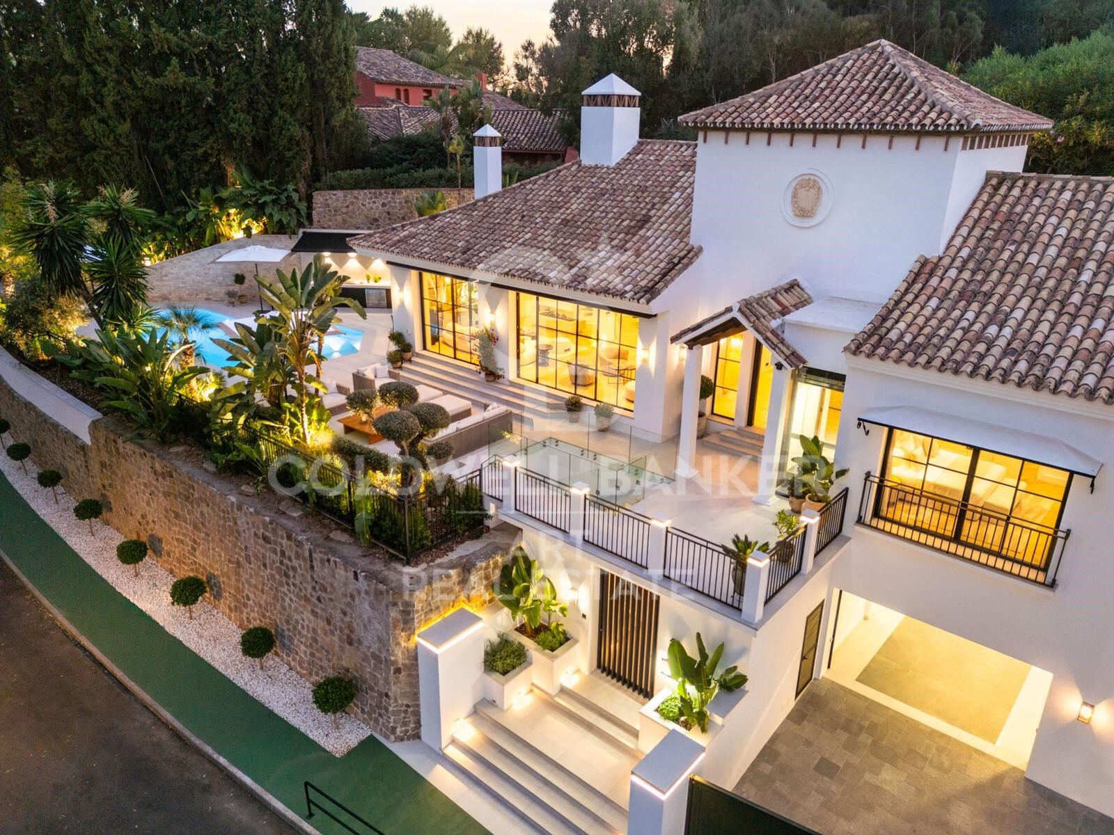 Située dans la prestigieuse communauté fermée d'El Herrojo Alto, l'une des plus recherchées de La Quinta, cette villa exceptionnelle combine architecture andalouse classique et design moderne, tout en profitant de vues panoramiques sur le golf de La Quinta et la montagne de La Concha.