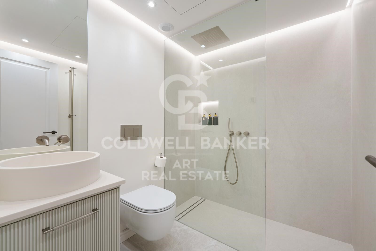 La cuisine est l'un des points forts de la propriété. Conçue avec des lignes épurées et des matériaux haut de gamme, elle comprend un grand îlot central, des appareils électroménagers intégrés et de nombreux rangements dissimulés dans une menuiserie sur mesure. La disposition favorise l'interaction, avec des vues directes sur le salon et un accès fluide aux terrasses extérieures et à la piscine. Cette combinaison de design et de fonctionnalité fait du niveau principal l'un des atouts majeurs de la villa.