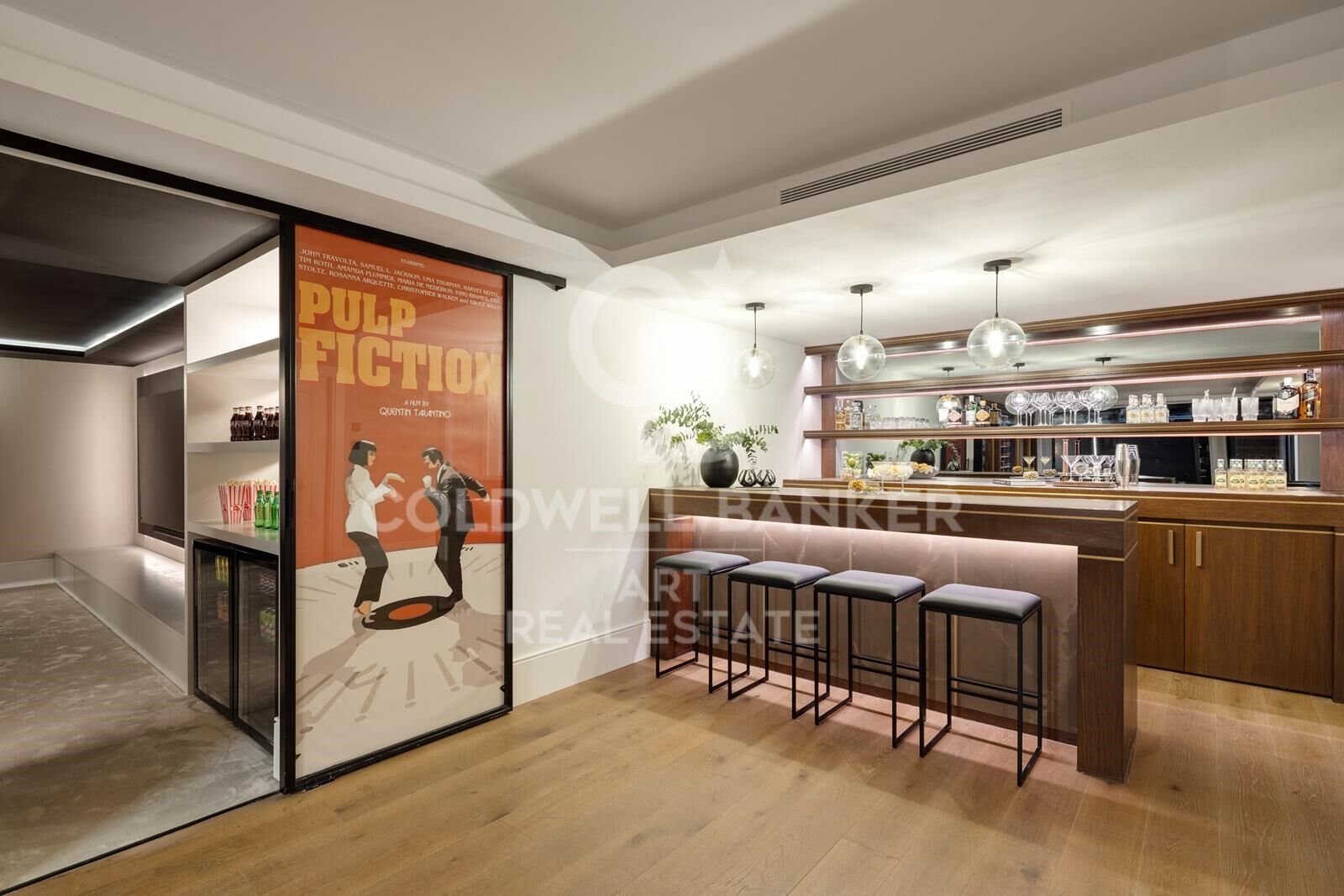 Le sous-sol est dédié au divertissement : bar lounge élégant, cave à vin vitrée sur mesure et salle de cinéma privée pour une expérience immersive. Un garage vitré permet de mettre en valeur votre collection automobile comme une uvre d'art.
