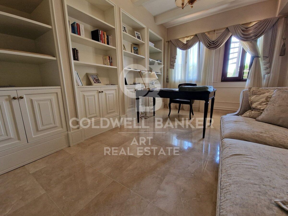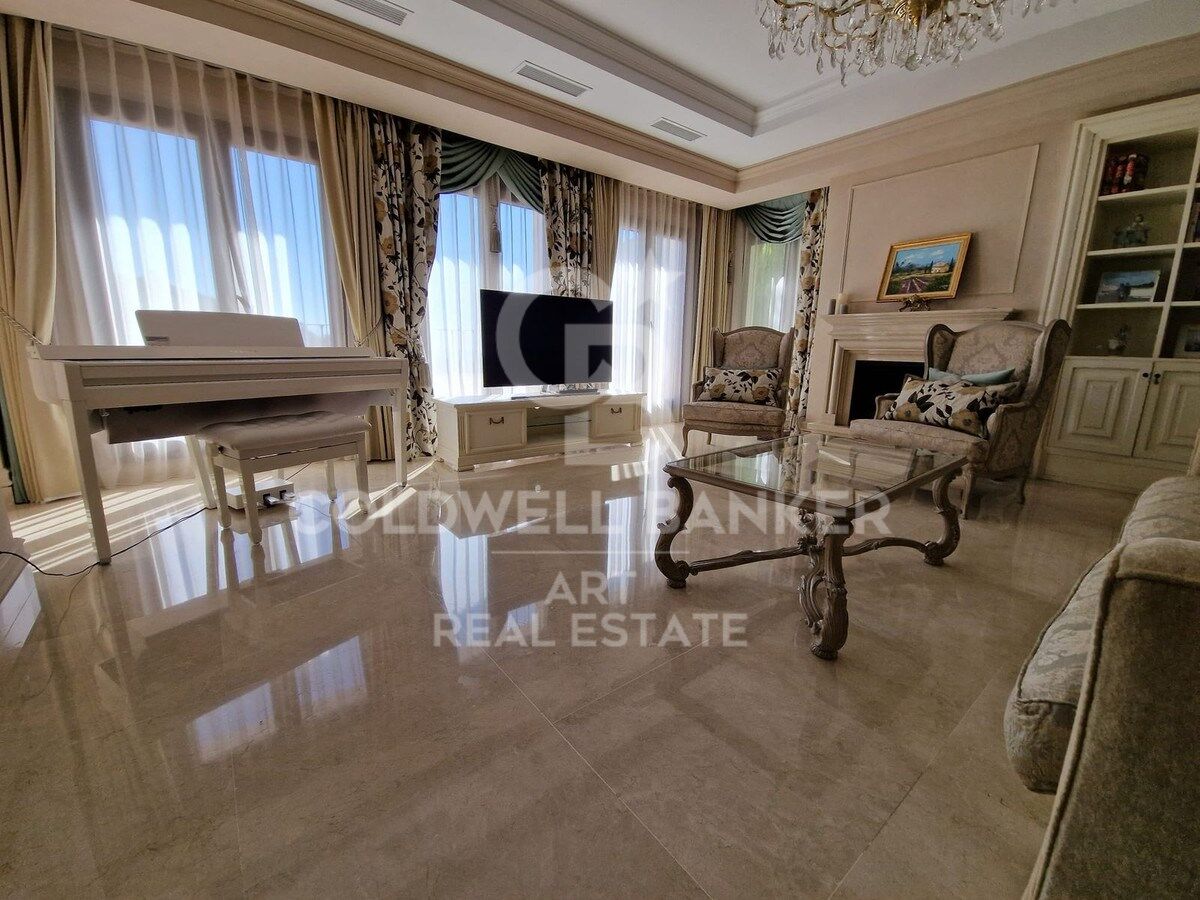 À l'extérieur, la maison dispose d'un jardin avec des palmiers mûrs, des pelouses et une piscine privée, ainsi que de grandes terrasses idéales pour profiter du climat méditerranéen toute l'année. De grandes fenêtres inondent la maison de lumière naturelle.