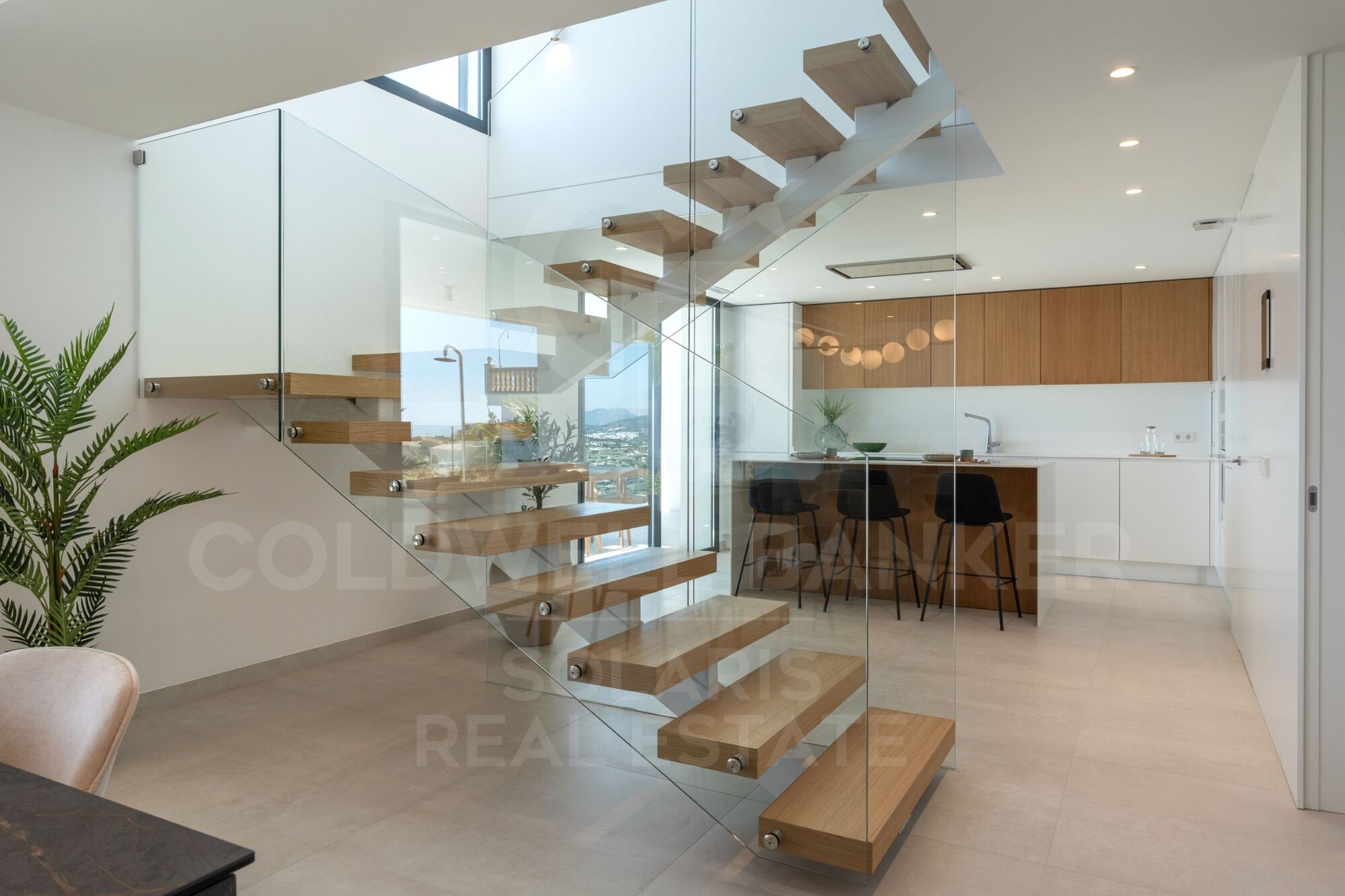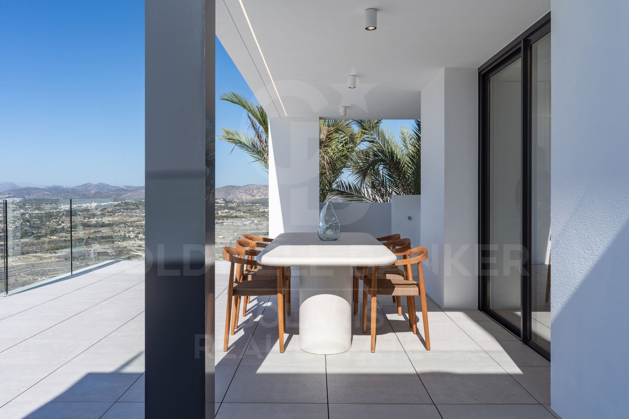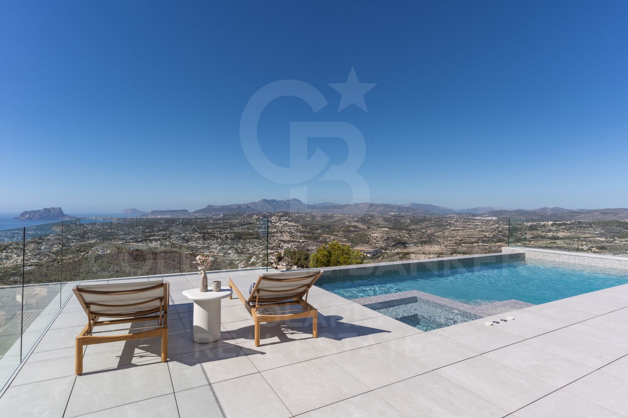 Au rez-de-chaussée se trouve la zone jour, une grande cuisine ouverte avec un îlot impressionnant, avec un banc pour le petit-déjeuner, ouvert sur le porche, une salle à manger d'été spectaculaire face à la mer, avec barbecue et salle de bain extérieure. Le salon dispose également d'un porche exquis, ce qui renforce encore l'idée de « vivre à l'extérieur » avec plusieurs zones de repos à côté de la piscine à débordement et du jacuzzi, pour profiter des merveilleuses journées ensoleillées dont jouit la Costa Blanca sans perdre de vue la mer Méditerranée.