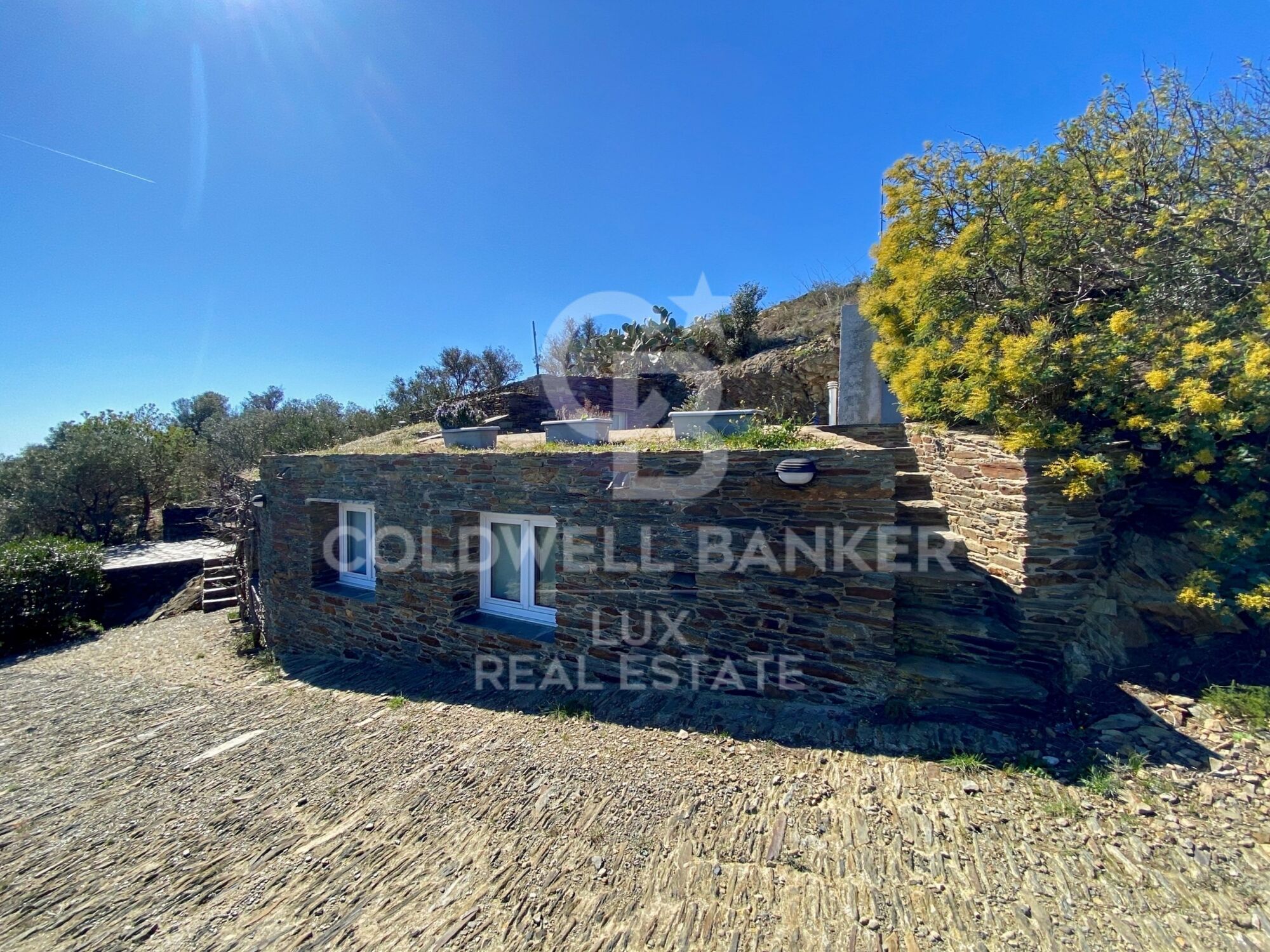 En descendant le chemin en pierre de la propriété, vous accédez à la première maison, en pierre sèche de Cadaqués, comprenant deux chambres avec de belles vues mer, une salle d'eau avec douche et wc, un salon, une cuisine ouverte, une mezzanine et un wc séparé.