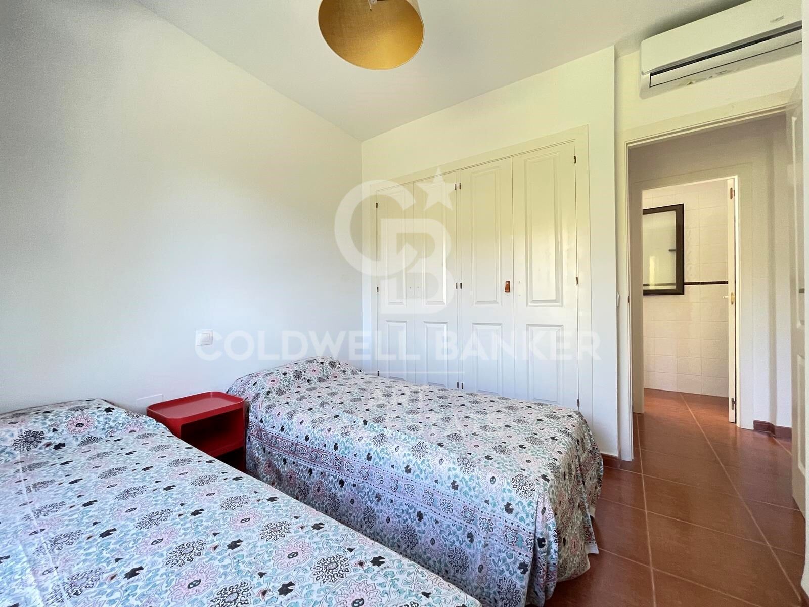 Grâce à son excellente orientation, la maison bénéficie de vues magnifiques sur la campagne, la montagne, les jardins et la piscine commune. Elle comprend trois chambres spacieuses avec placards intégrés, parfaitement adaptées aux familles ou à ceux qui recherchent de l'espace et du confort. Les deux salles de bains sont pratiques et confortables, avec climatisation pour un climat agréable toute l'année.