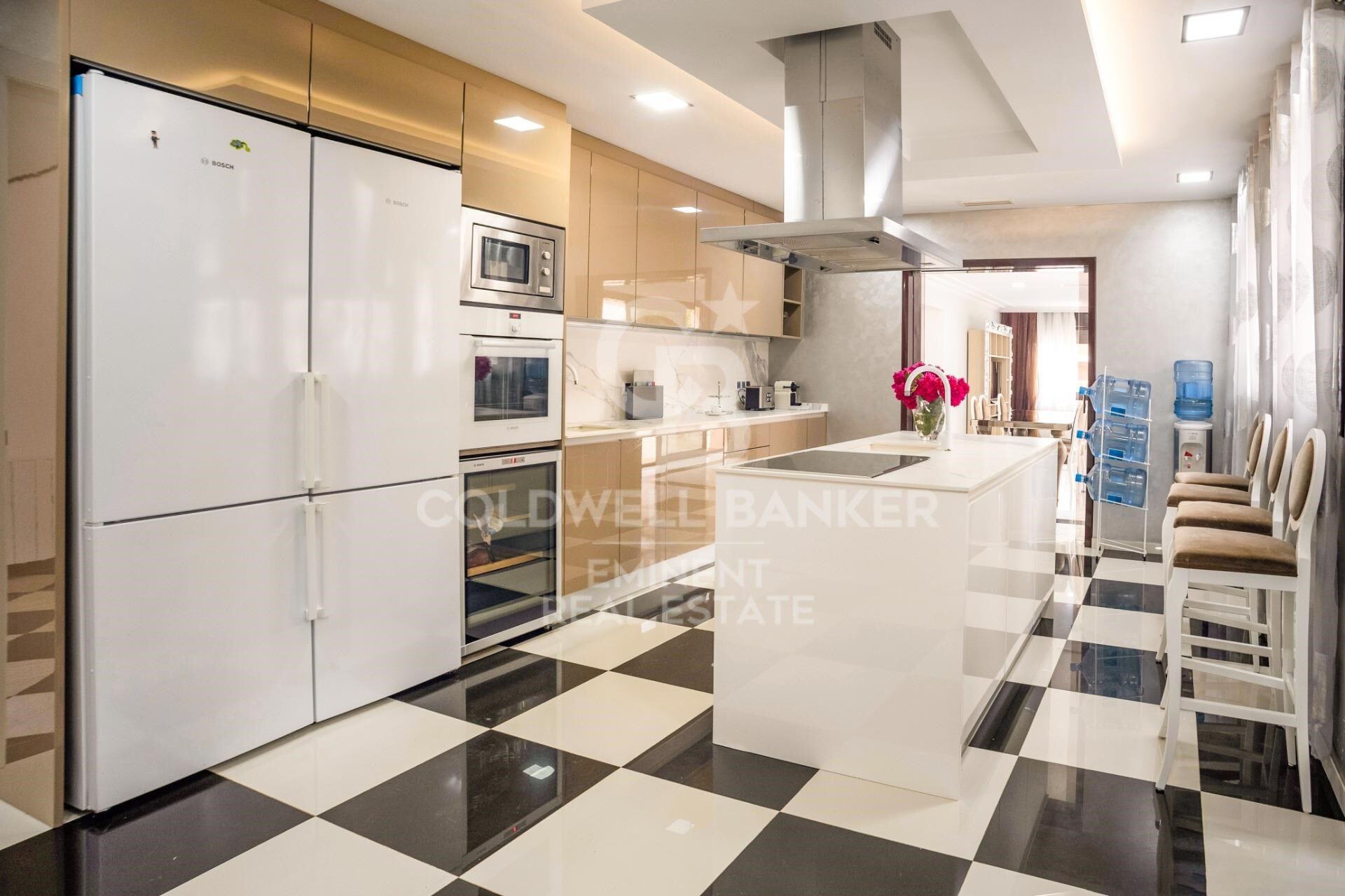 La maison a été entièrement rénovée en 2025. Elle dispose de 9 chambres spacieuses et de 8 salles de bain élégantes, avec des finitions haut de gamme et des équipements tels que Villeroy & Boch. Les intérieurs se distinguent par leur luminosité grâce à leur orientation sud-ouest, et les grandes baies vitrées panoramiques offrent des vues sur la mer et l'environnement verdoyant. La disposition rationnelle fait de cette maison un lieu idéal pour une grande famille ou pour ceux souhaitant avoir des bureaux indépendants ou des chambres d'invités. Cette propriété de trois étages garantit une totale intimité.