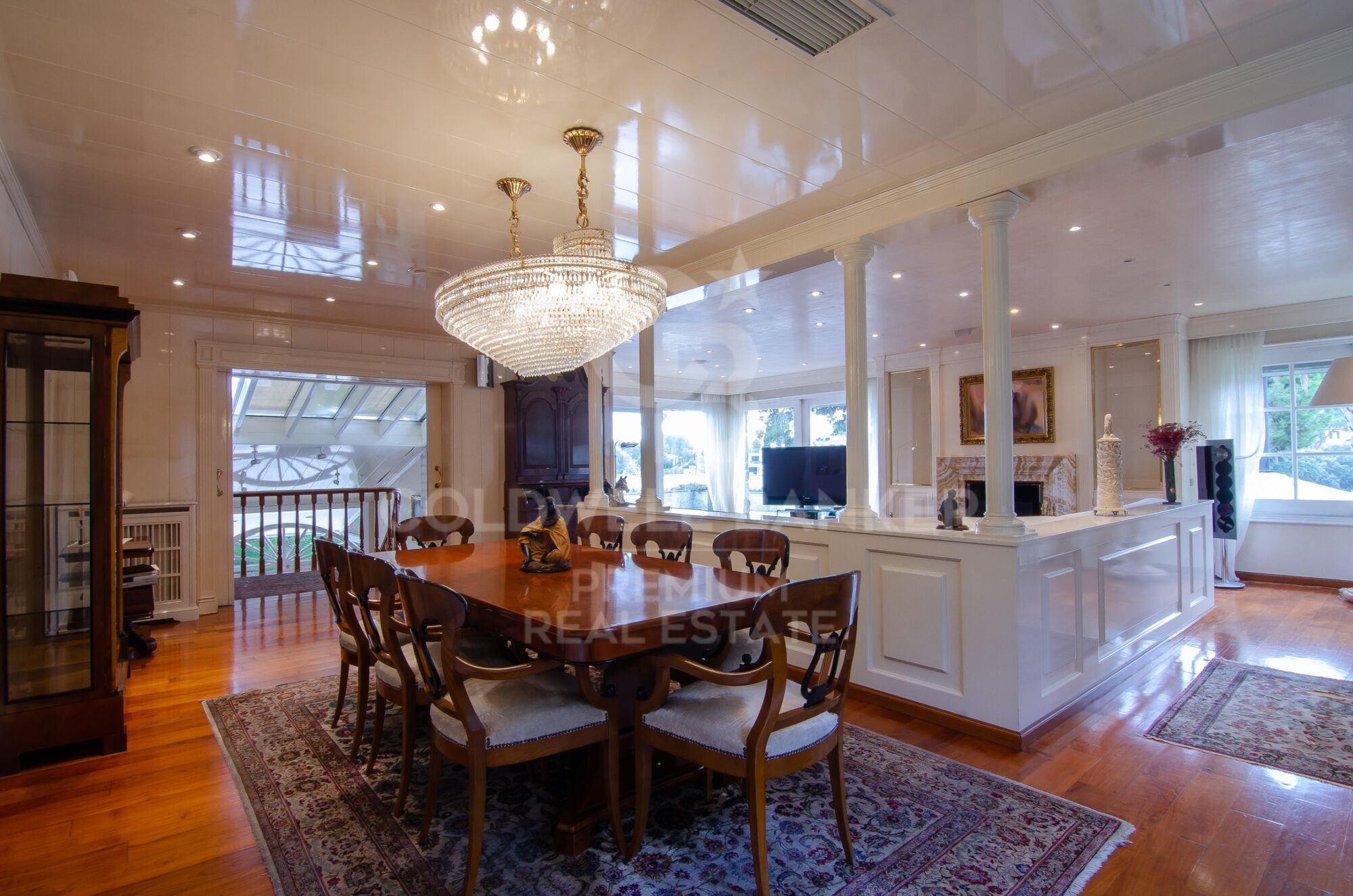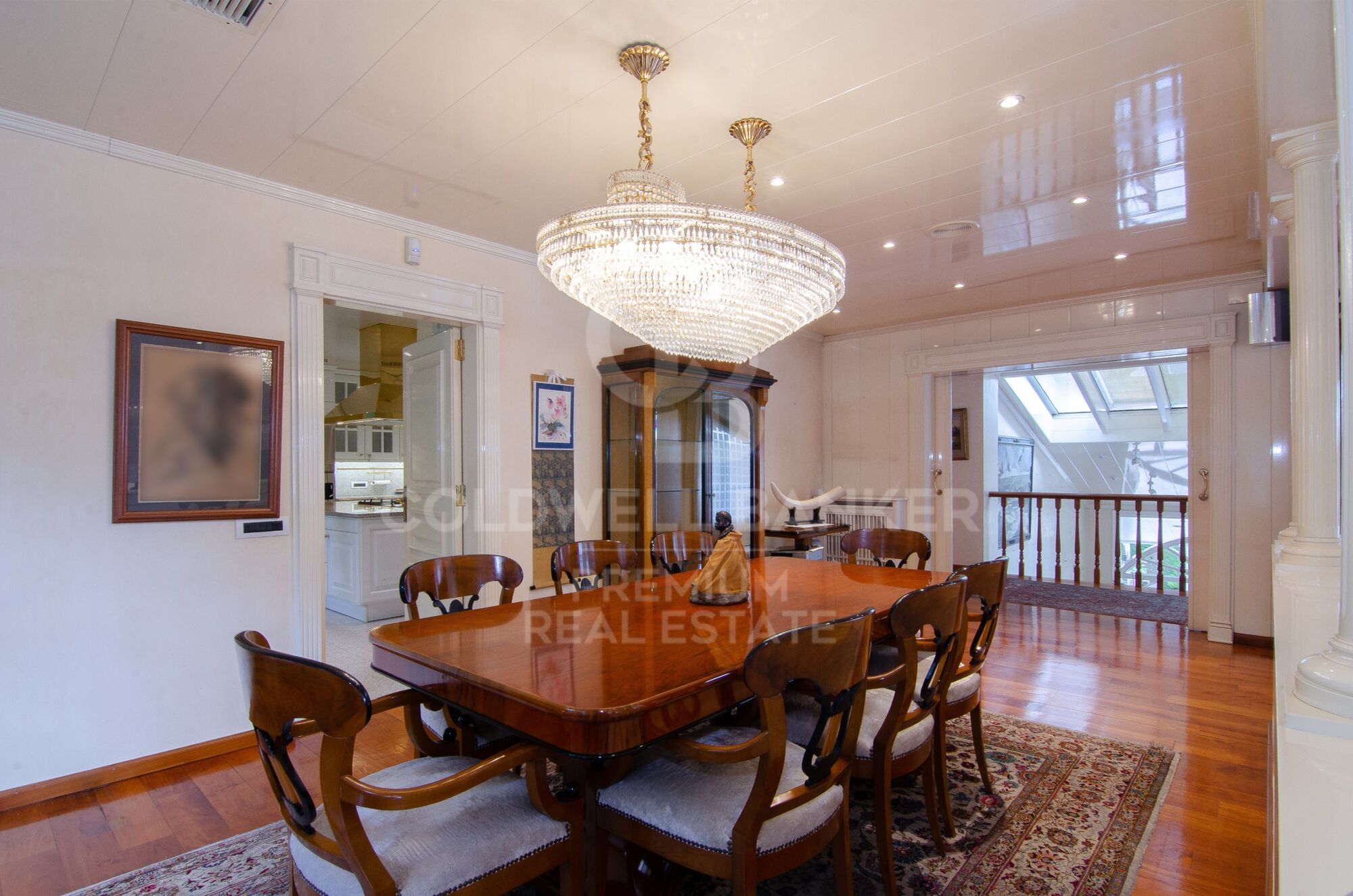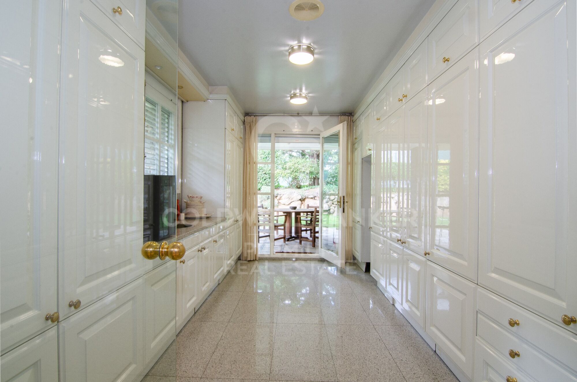 La maison bénéficie d'un emplacement privilégié, tant pour son orientation sud, son intimité, ses vues et son quartier exclusif. Un environnement qui correspond à l'espace, au confort et au luxe qu'offre cette propriété. La maison dispose de 1000m2 ce qui permet à chaque pièce d'être dotée d'un grand espace, répartissant le tout dans de grands espaces où aucune pièce n'est superflue. Nous pouvons faire toute la vie sur un seul étage et réserver l'étage inférieur pour les chambres d'été et les fitnes et l'étage supérieur pour les loisirs. En plus d'une cave à vin d'exception qui est sans aucun doute l'un des joyaux que cette maison conserve.