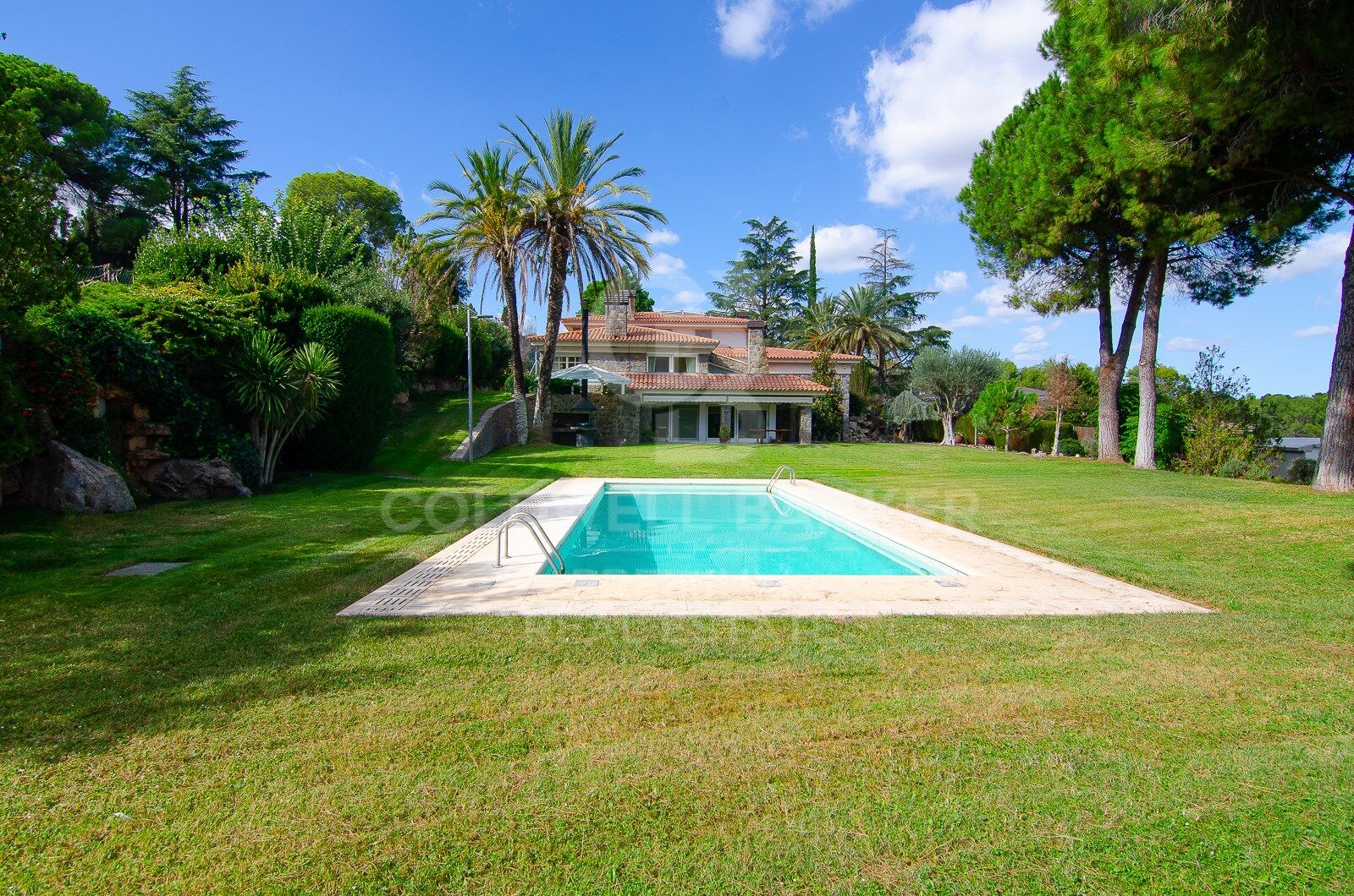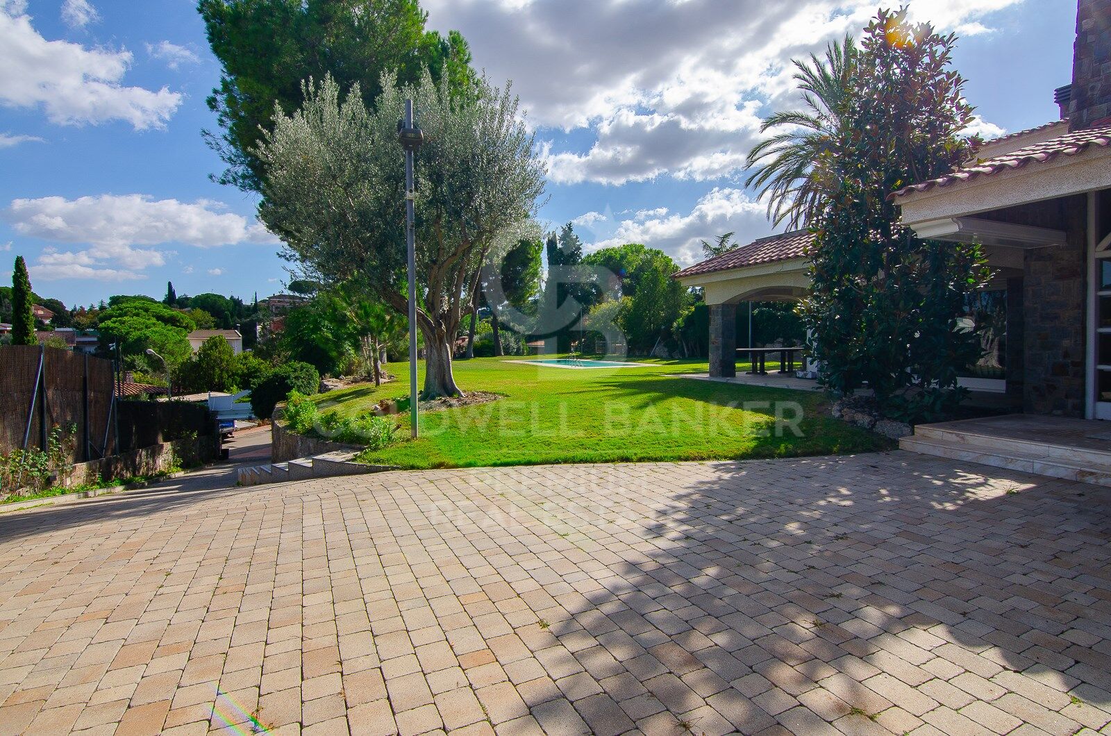 COLDWELL BANKER a le plaisir de vous présenter cette magnifique villa, sur un terrain de 10.000m2, qui vous permettra de vous isoler dans un environnement naturel, à Bellaterra, à seulement 20 minutes de Barcelone. Entourée de palmiers et de végétation tropicale, présidée par une impressionnante piscine, vous trouverez cette belle maison équipée de tous les conforts, avec de grands espaces ouverts et lumineux. La superficie est de 635 m2 entre la maison, la maison d'amis et toute la zone sportive, avec une orientation sud-est. La maison n'est visible de la rue sous aucun angle, ce qui la rend particulièrement privée. Nous entrons dans la propriété par un chemin entouré de végétation des deux côtés jusqu'à ce que nous découvrions la maison à l'arrière-plan. On débarque sur le grand parking et de là, parallèlement à la piscine, on arrive à l'entrée de la maison. A l'intérieur, nous sommes directement accueillis par un salon spacieux et accueillant avec cheminée et salle à manger. Deux grandes fenêtres laissent entrer toute la lumière et permettent de voir la piscine et la végétation luxuriante du jardin. Ce grand espace peut accueillir plusieurs salles de lecture ou de musique supplémentaires car il est très spacieux. À l'arrière de la maison se trouve la cuisine/salle à manger entièrement équipée. À cet étage se trouve également la grande chambre principale avec sa salle de bains attenante. Au rez-de-chaussée se trouvent deux chambres doubles avec salle de bains attenante et une troisième chambre assistée d'une autre salle de bains. Il y a également une belle cave à vin avec un plafond voûté et une buanderie. Le jardin dispose d'une très grande piscine, d'un solarium avec une vue spectaculaire sur l'horizon et d'un espace barbecue. Cette dernière zone abrite la villa d'hôtes avec une chambre double et une salle de bains. Enfin, nous découvrons un magnifique court de tennis bleu. On peut se perdre dans divers sentiers aménagés ou s'enfoncer dans la forêt que possède la propriété, toujours entourée de la plus stricte intimité. DESCRIPTION DE L'ENDROIT : Bellaterra est située dans une zone élevée et ensoleillée, entre les villes de Sant Cugat, Sabadell, Sant Quirze et Cerdanyola. Fidèle à ses origines, elle s'est imposée comme une zone résidentielle par excellence, avec une population très familière qui y réside tout au long de l'année. Séparée de la chaîne de montagnes de Collserola, Bellaterra fait face à la mer au sud-est et au Montseny au nord-est. Son enclavement stratégique la place à 12 minutes de Barcelone par la C-58 et à 20 minutes de l'AP-7 et de la B-30. Cette connectivité permet d'accéder à tous les services souhaités. En moins de 5 minutes, nous sommes dans les hôpitaux de référence, les universités (UAB, UIC et ESADE), les écoles internationales les plus prestigieuses (Agora, Europa School International, Japanese School, Viaró, La Vall), les centres commerciaux (IKEA ; Corte Inglés, Cinémas), les zones industrielles (Can Sant Joan, ...) et les centres sportifs les plus remarquables. Elle dispose des services typiques d'une petite ville comme une pharmacie, un bureau de banque, une église, des restaurants, un club de sport, un coiffeur, une animalerie, une station-service, entre autres. En outre, il y a deux gares ferroviaires de la Generalitat. Tout ce dont vous avez besoin pour vivre dans un environnement naturel sans renoncer à la connexion immédiate avec les villes qui l'entourent. #ref:CBSC121