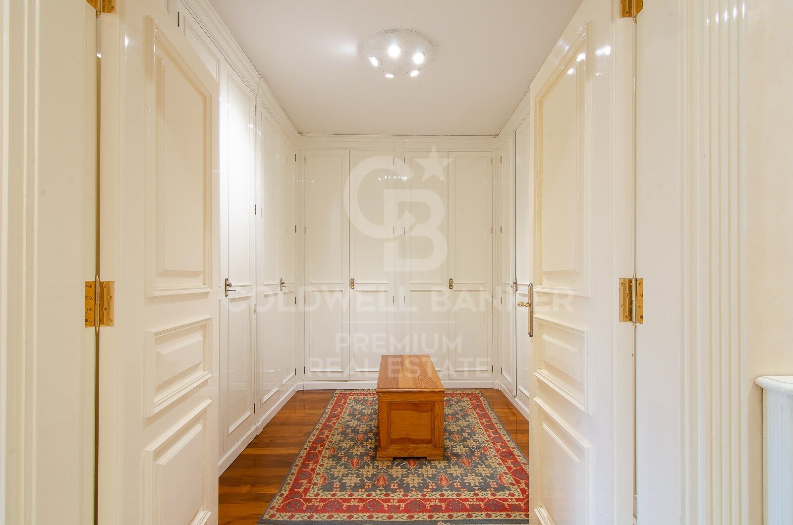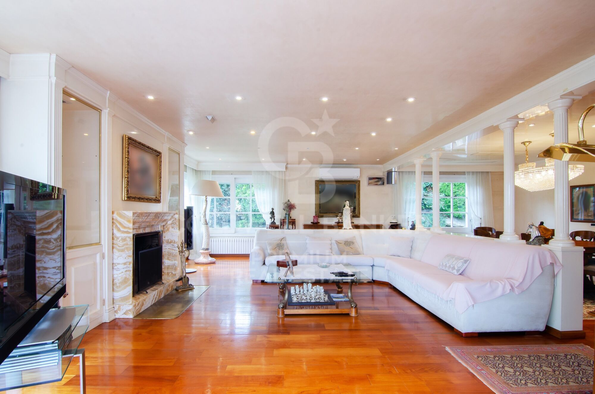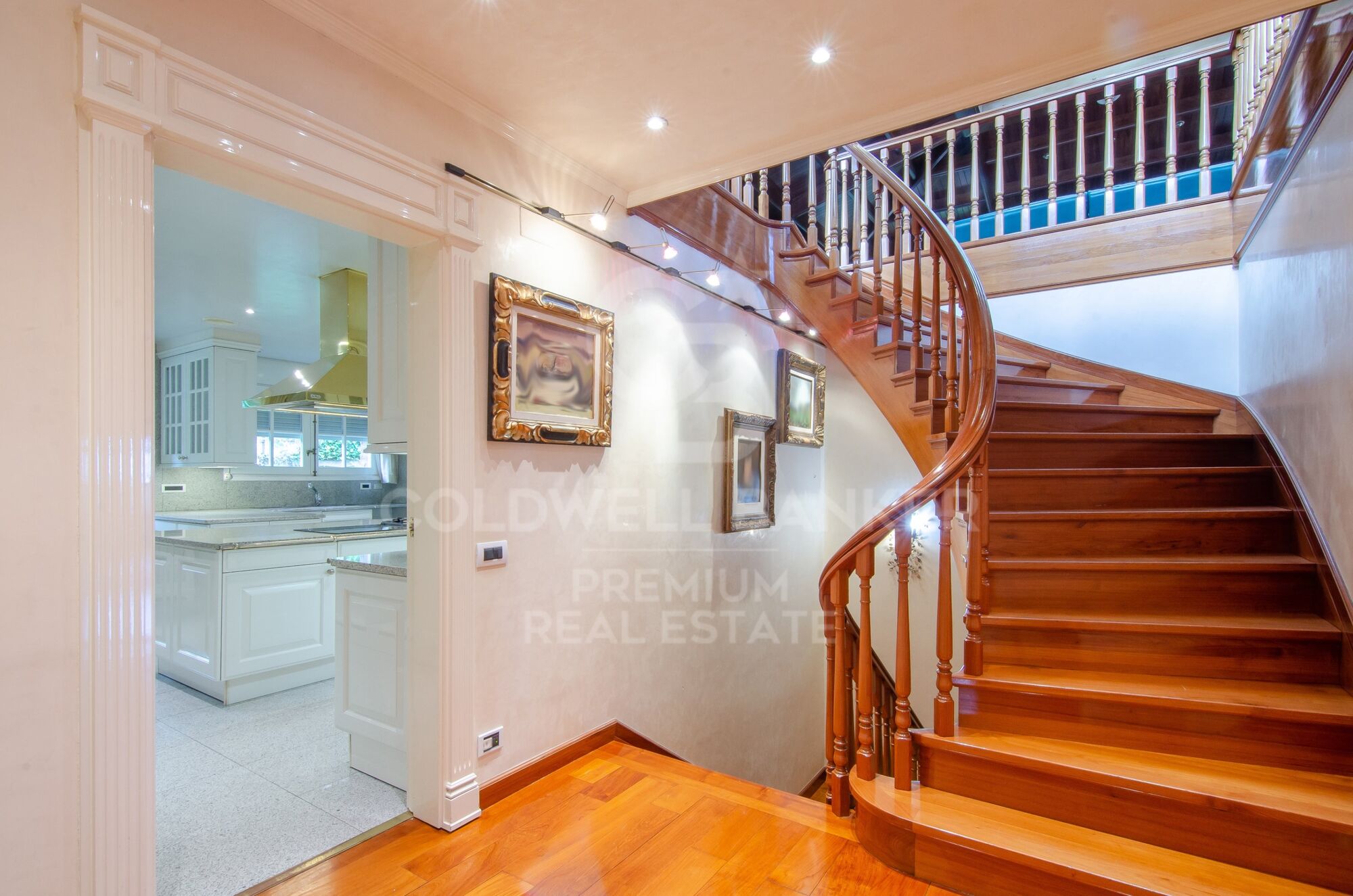 La maison a été entièrement rénovée en 1992, l'agrandissant et lui donnant la forme, le style et les caractéristiques actuels. Nous entrons par le hall où se trouve un élégant escalier en bois de forme incurvée. Il nous donne accès au rez-de-chaussée, tout avec un plancher de bois naturel, où nous trouvons un salon impressionnant avec cheminée et de grandes fenêtres, d'où vous dominez toute l'extension de la propriété. Il a un accès immédiat au jardin qui entoure toute la maison. La salle à manger communique avec la magnifique cuisine et à son tour avec le bureau et la buanderie et une sortie arrière avec une délicieuse terrasse idéale pour le petit-déjeuner, qui vous permet de profiter du jardin disposé autour du périmètre. De l'autre côté, en montant les escaliers, se trouve la zone nuit. Il dispose d'un grand couloir qui distribue 3 grandes chambres doubles, l'une d'entre elles en suite et les deux autres partageant une salle de bain. Enfin, nous trouvons une suite parentale spectaculaire avec salle de bain, dressing, salon privé avec cheminée et accès au jardin surmonté d'un délicieux porche.