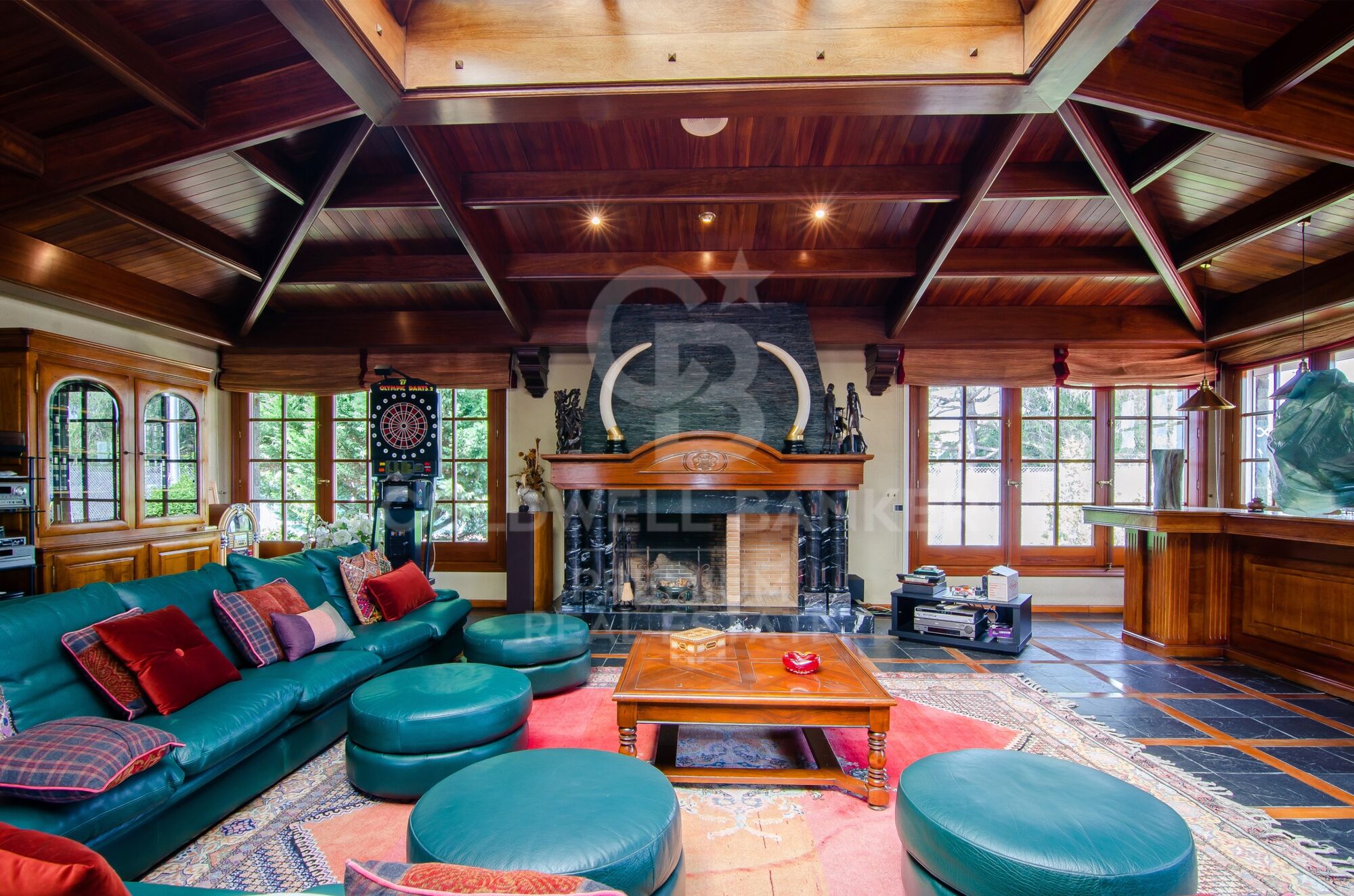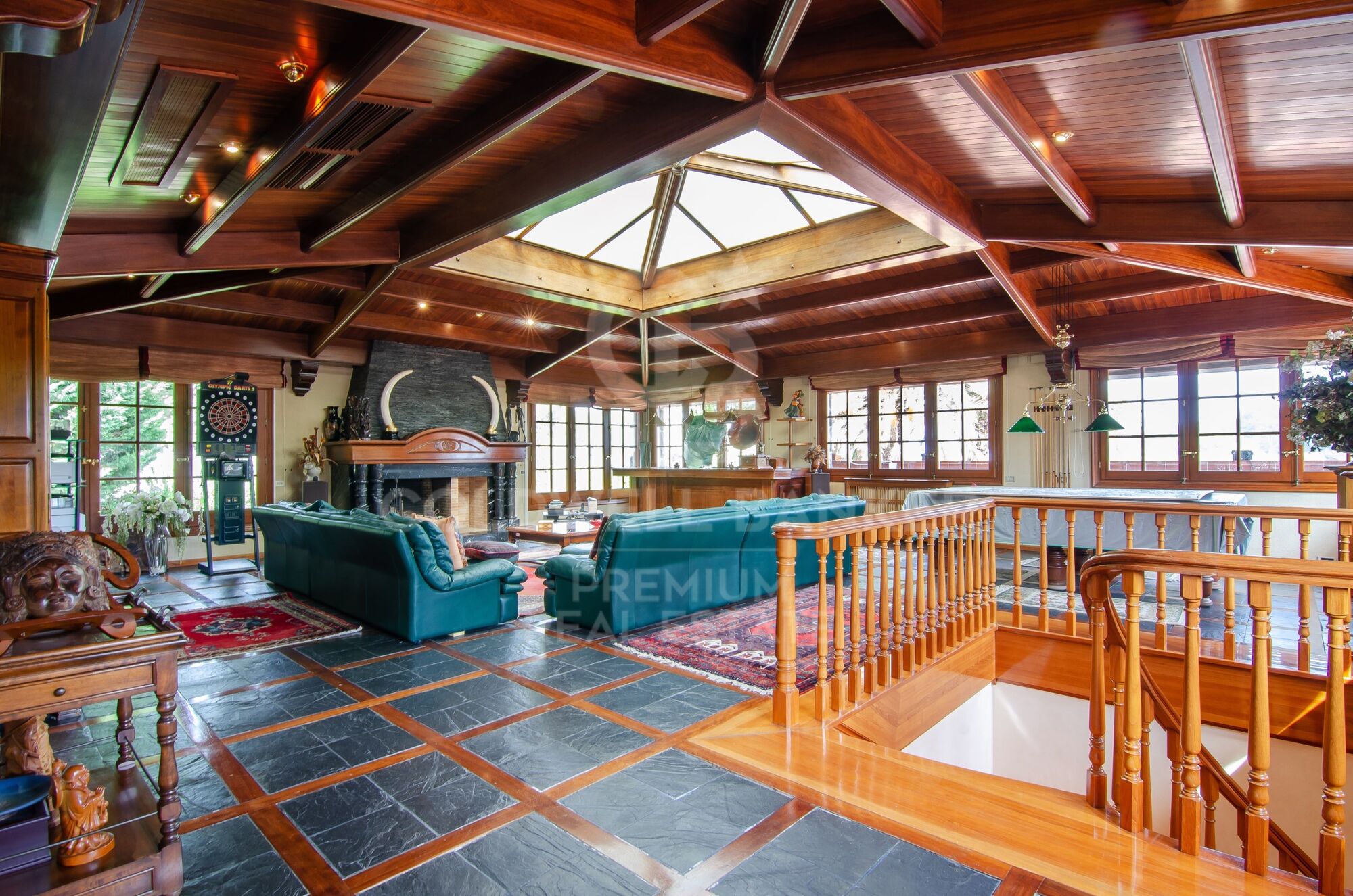 De cet étage, nous pouvons accéder par un magnifique escalier intérieur du même style que celui situé dans le hall principal, à l'étage supérieur où nous découvrons un impressionnant et grand salon, avec plafond à caissons et revêtement en bois sur colonnes et plafond, de style colonial avec une magnifique cheminée en pierre et un sol en ardoise et bois, pour profiter des meilleures soirées en famille ou entre amis. Un espace de loisirs spectaculaire qui ne vous laisse pas indifférent. Il est complété par un espace de travail et une chambre avec une salle de bain idéale pour les invités.