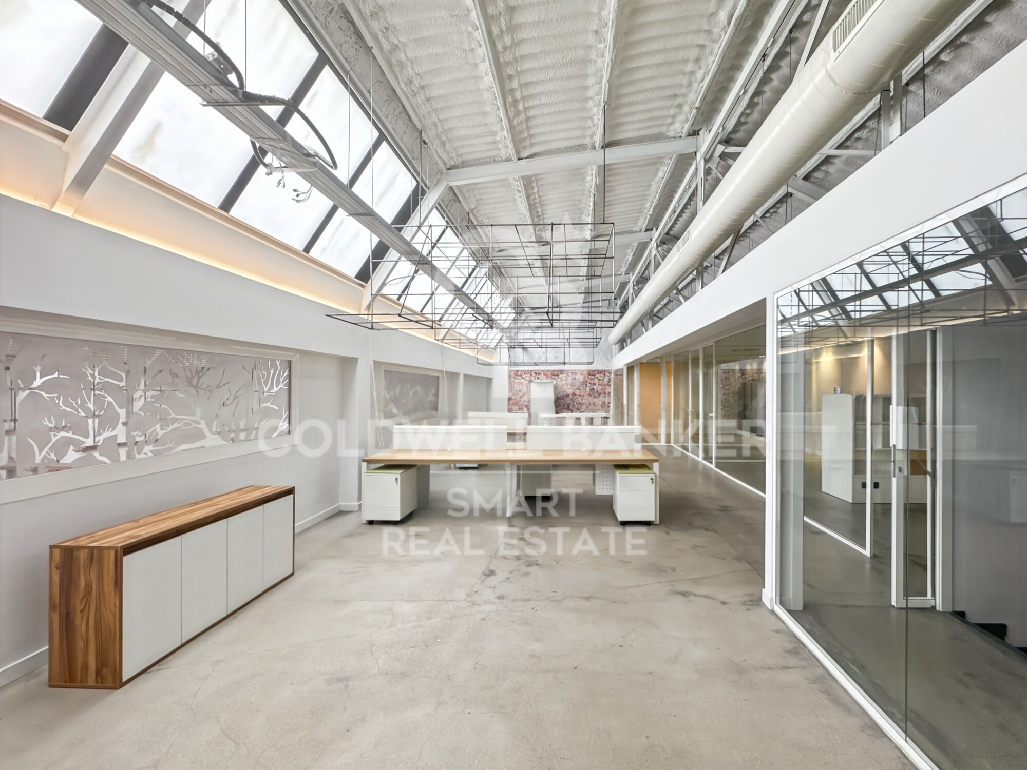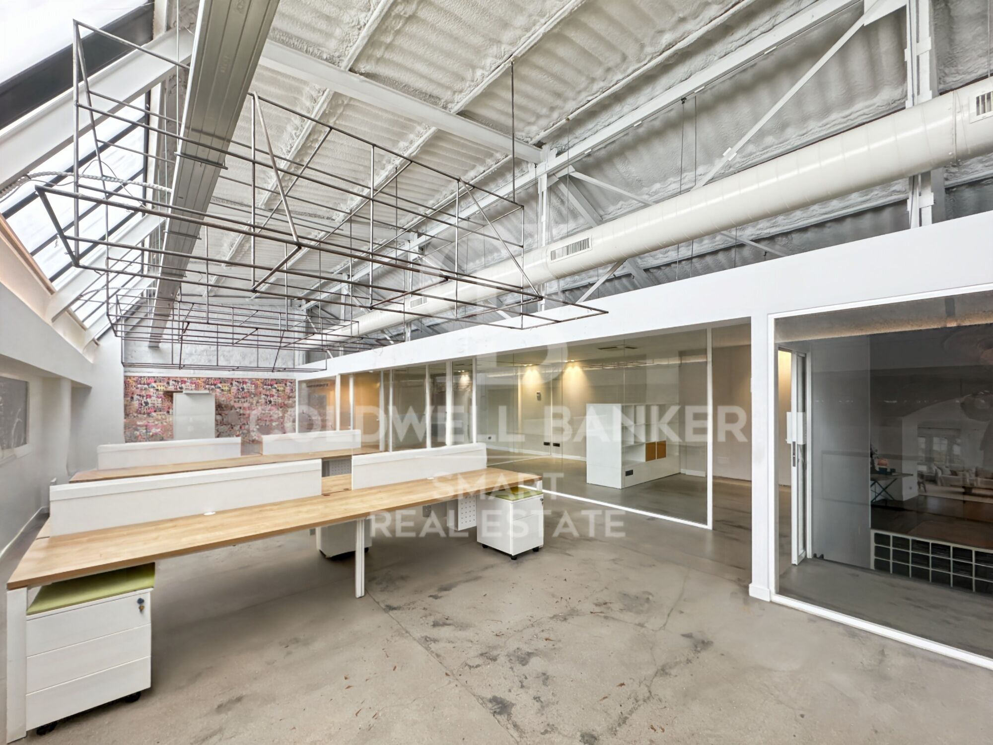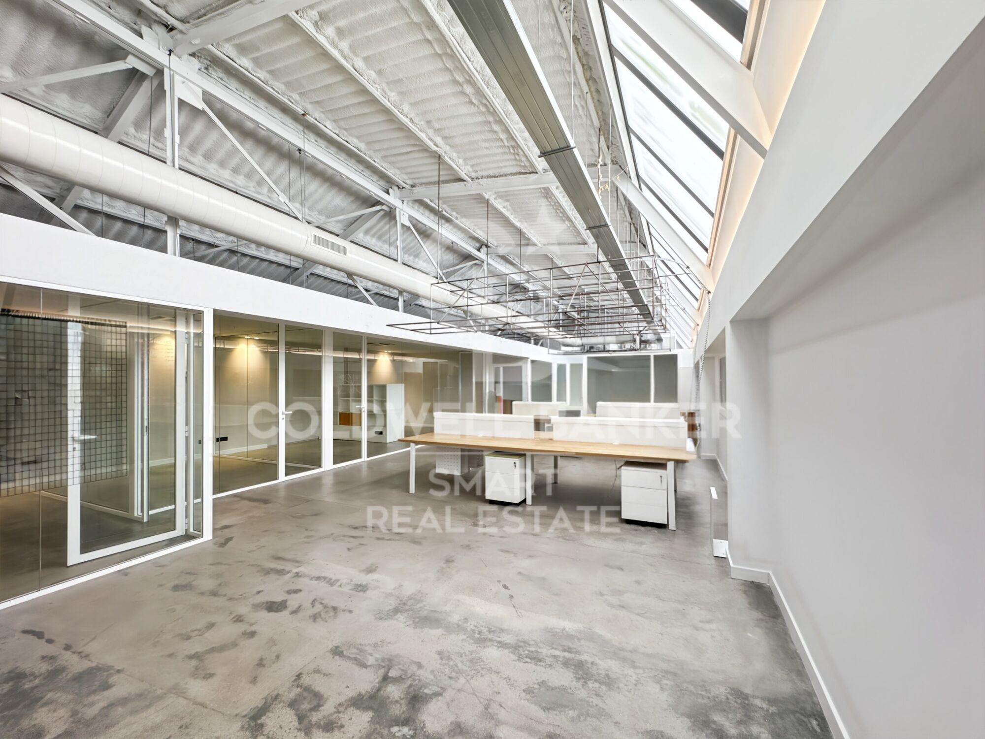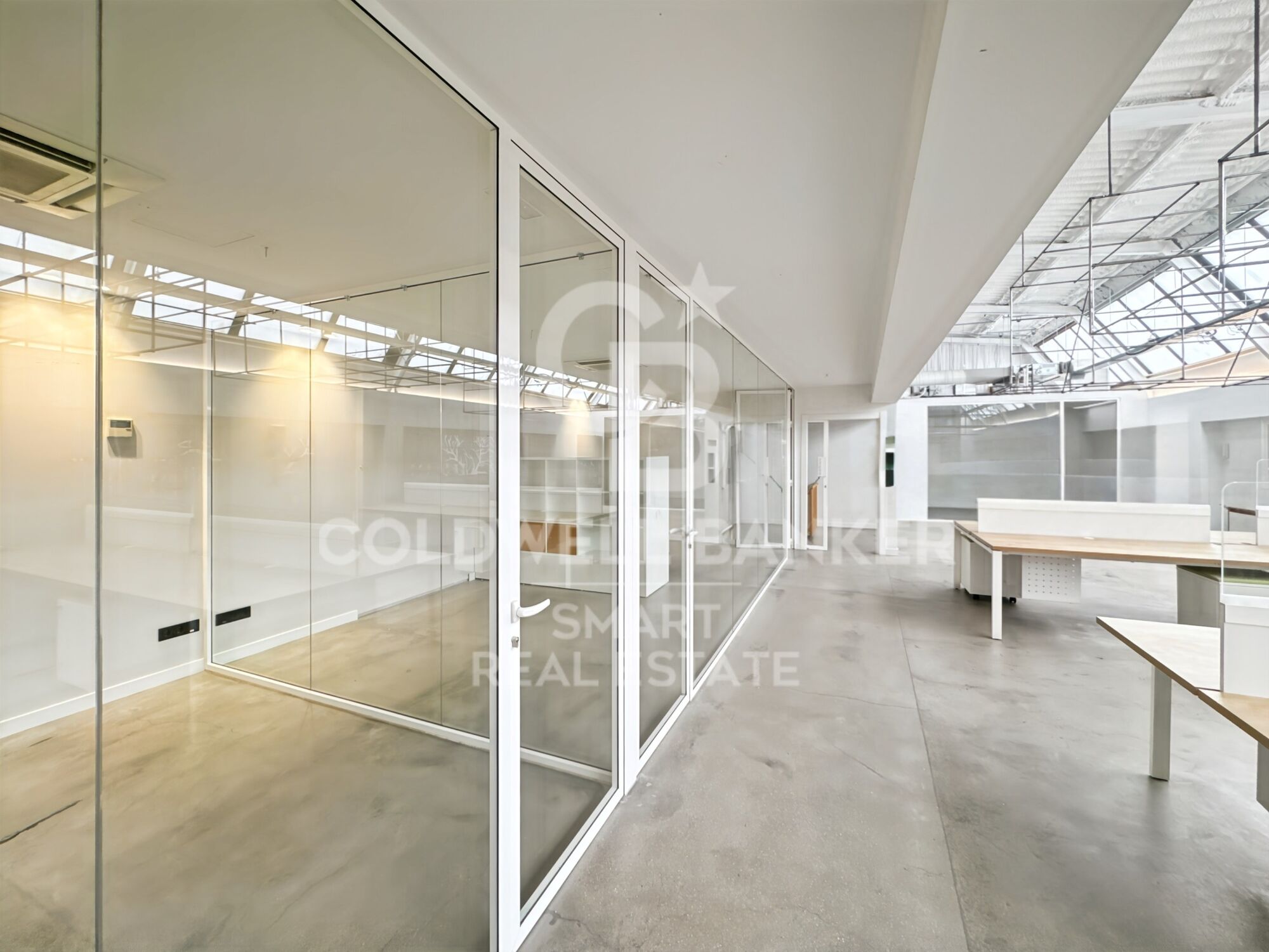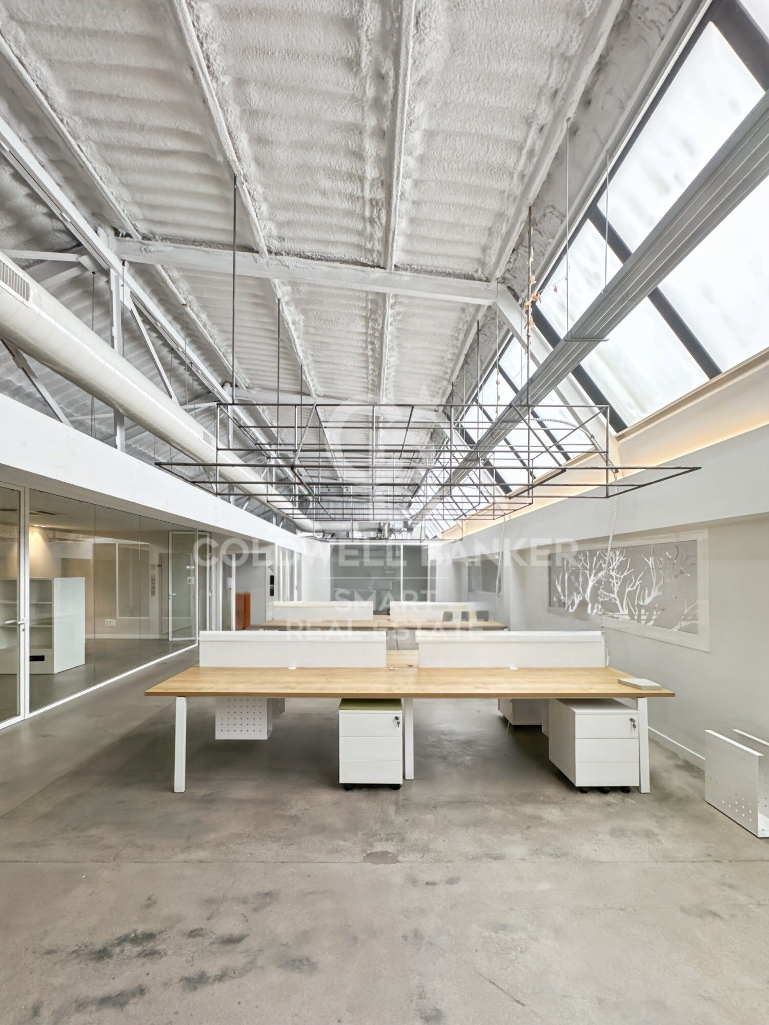 La oficina disfruta de luz natural directa a través del techo, lo que la hace especialmente agradable. Los baños son compartidos y se encuentran en el mismo edificio. También cuenta con zona de office compartida.