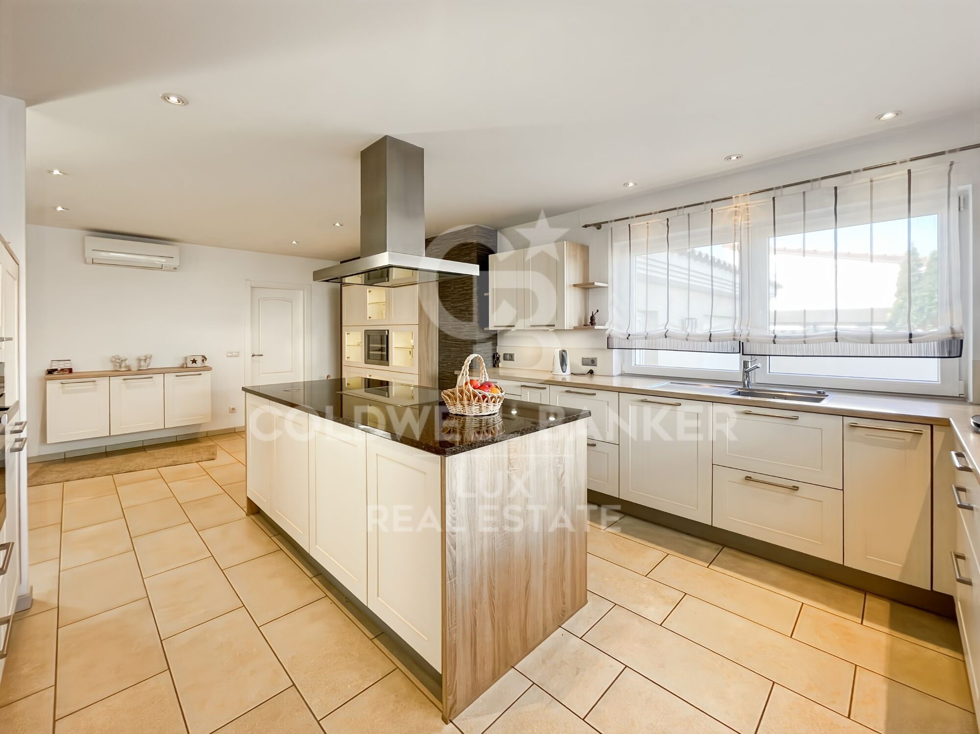 Dès l'entrée, vous serez séduit par ses espaces lumineux et bien conçus. Au rez-de-chaussée, une cuisine haut de gamme de 30 m² s'ouvre sur un salon-salle à manger de 54 m² avec cheminée. Ces espaces s'ouvrent sur une grande terrasse donnant sur le jardin et une piscine extérieure en forme de rein (4m x 8m), créant ainsi un environnement parfait pour se détendre. Un hall d'entrée spacieux, un bureau et des toilettes pour les invités complètent ce niveau.