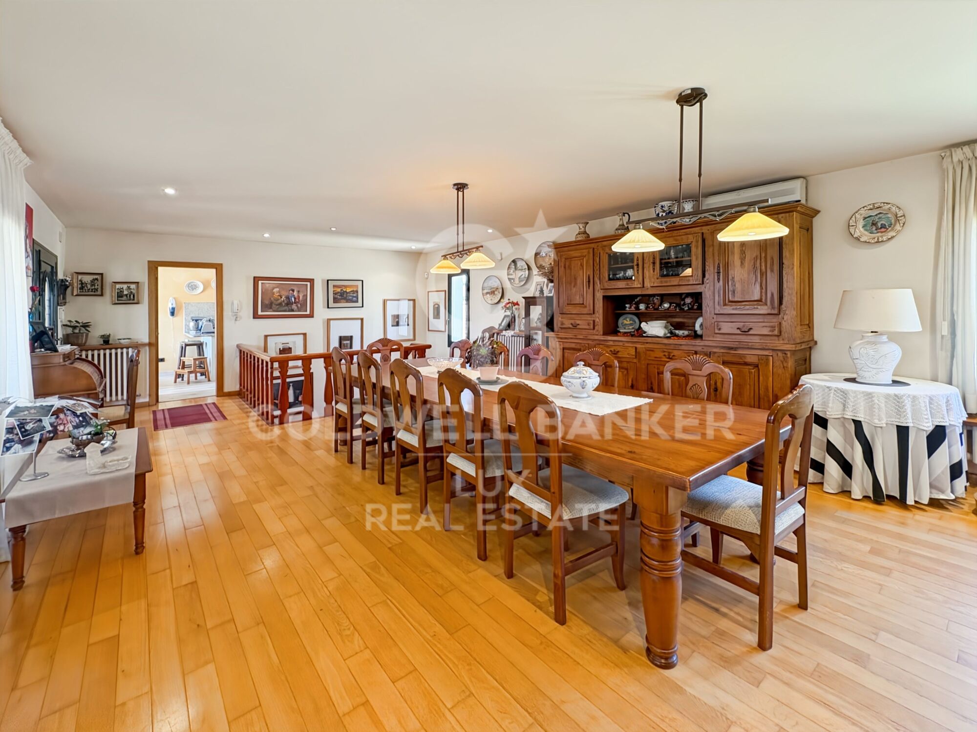 À l'étage, la partie jour baignée de lumière se compose d'un salon-salle à manger, d'une cuisine indépendante et de deux terrasses bien orientées, dont l'une couverte, l'autre ouverte sur le jardin et la piscine.
