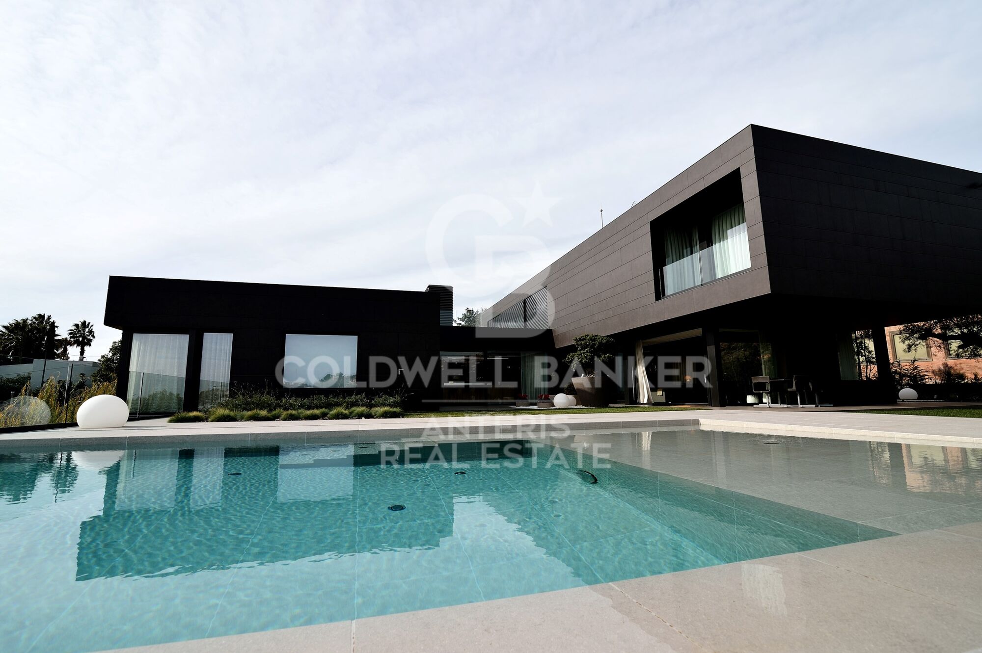On the first floor, an imposing double-height living-dining room with gas fireplace creates a cozy and elegant atmosphere. The kitchen with island, with direct access to the infinity pool, is a perfect place for culinary creativity. The night area, separated from the day area ensuring comfort and privacy, offers three double bedrooms en suite, a playroom with bathroom and the master suite with dressing room and Jacuzzi, with direct access to the pool and large windows overlooking Barcelona.