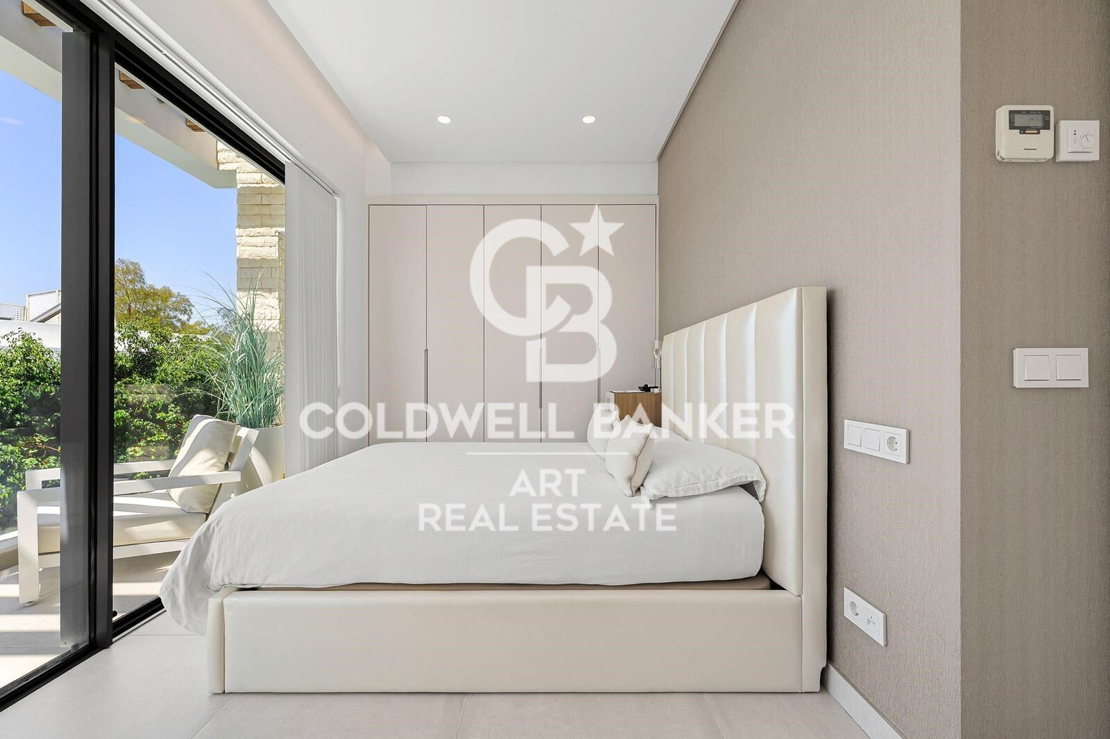 À l'étage, la suite parentale dispose d'une terrasse privée et d'une salle de bains élégante. Deux autres chambres avec salles d'eau bénéficient d'une seconde terrasse et d'une excellente luminosité. L'agencement privilégie intimité et fluidité.