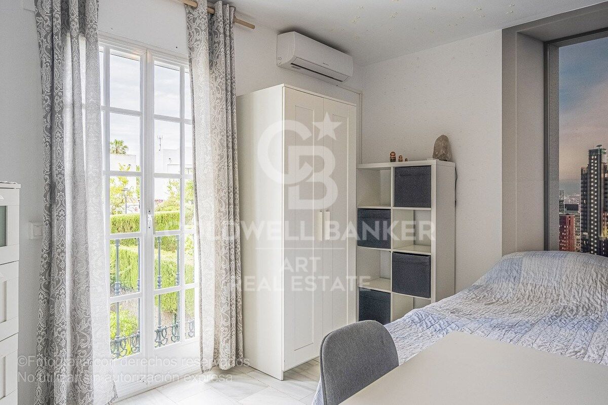 Le rez-de-chaussée comprend également des toilettes invités et une cuisine indépendante avec vue sur le jardin. À l'étage, la maison dispose de trois chambres et deux salles de bains, dont une en suite. En montant encore, on accède à un solarium privé offrant des vues panoramiques spectaculaires sur la mer et les montagnes, l'endroit idéal pour se détendre au coucher du soleil. La résidence dispose d'une voie interne permettant de se garer directement devant la maison.