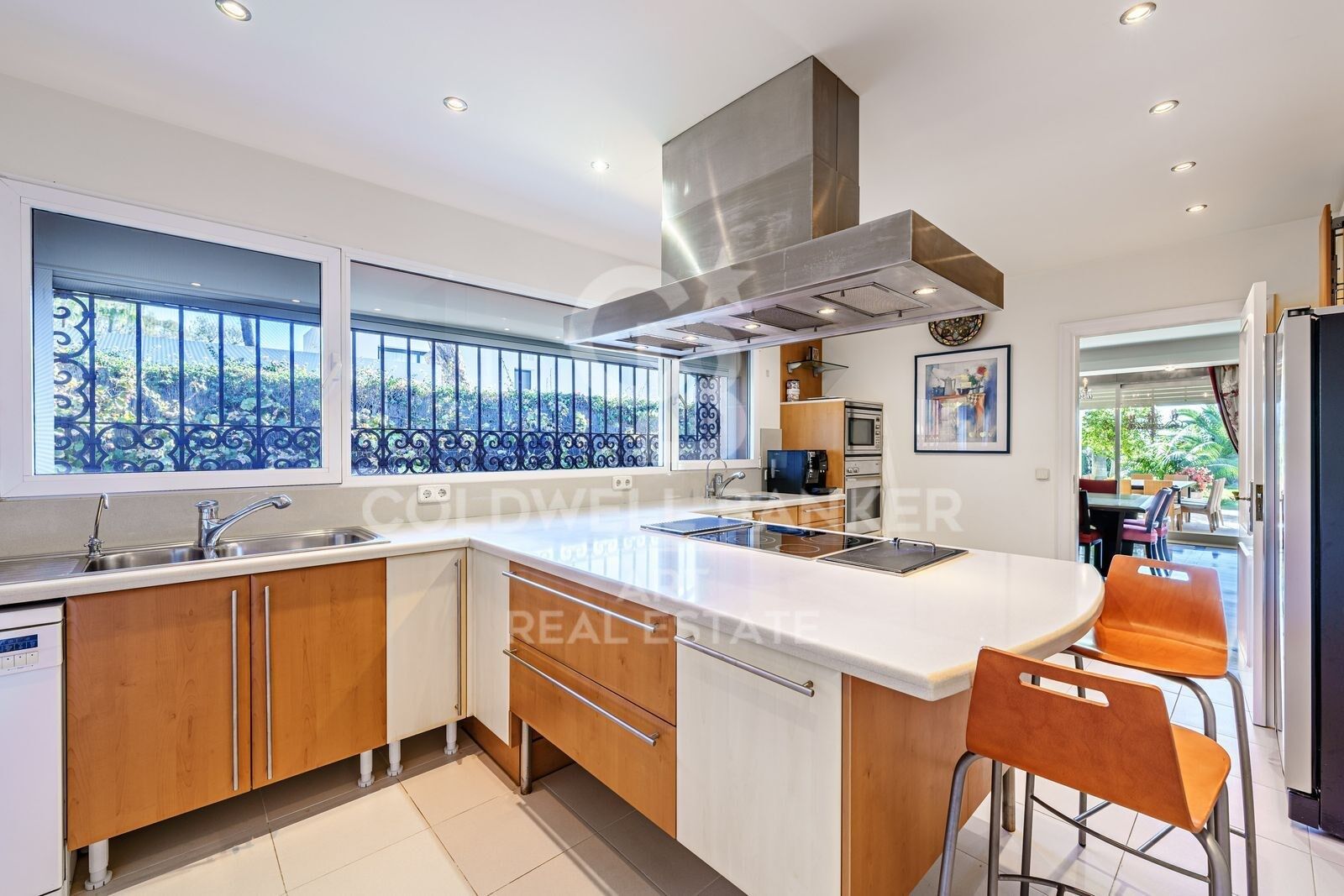 L'intérieur s'ouvre sur une vaste terrasse où vous pourrez vous détendre dans le salon extérieur, profiter d'un repas en plein air ou simplement admirer les vues spectaculaires sur le jardin et la piscine.