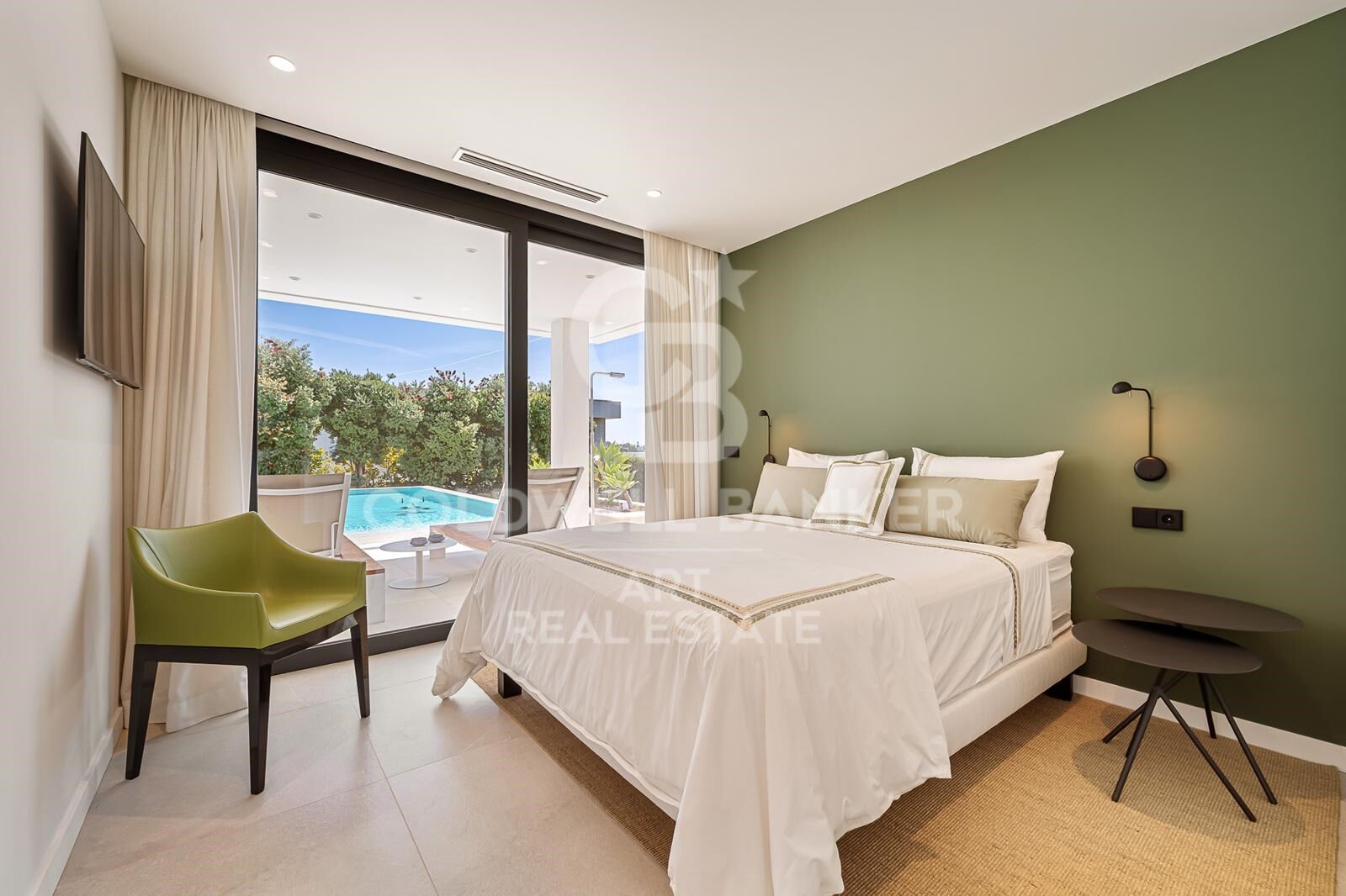 Pour ajouter à son attrait, la villa comprend un espace bien-être privé avec un sauna et un jacuzzi, offrant l'espace ultime pour se détendre. À proximité de terrains de golf de premier ordre, de restaurants raffinés et de plages immaculées, cette maison présente une occasion rare de profiter du luxe contemporain dans l'un des cadres côtiers les plus recherchés.
