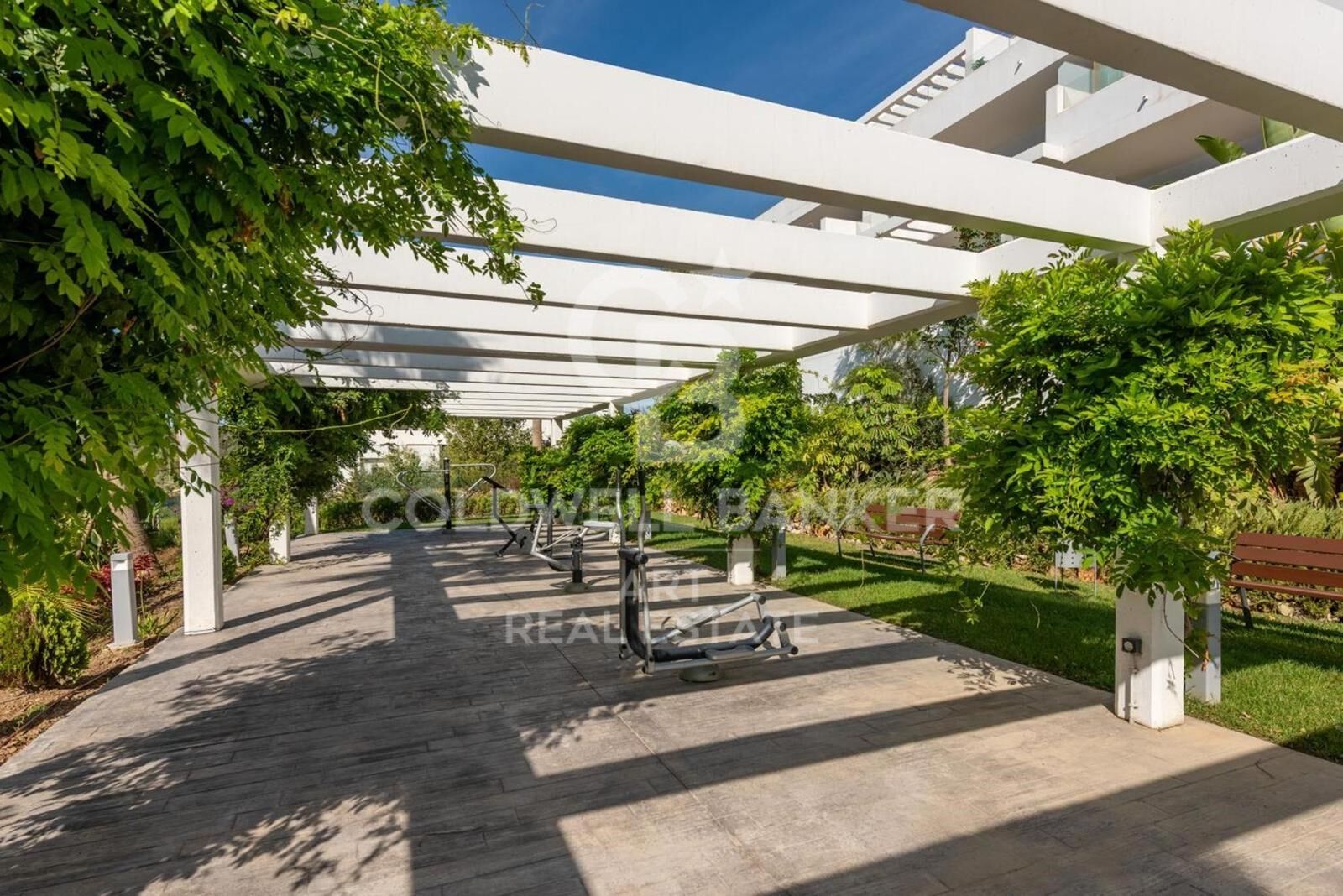 Cet appartement exceptionnel au rez-de-chaussée est présenté, situé dans l'un des quartiers les plus recherchés d'Estepona West. Avec une superficie construite de 182 m² et 90 m² d'espace intérieur, cette propriété a été transformée de son aménagement original de trois chambres à un design moderne de deux chambres, vous permettant de profiter d'un salon spacieux de 30 m². Cette modification offre plus d'espace et de confort dans l'espace de vie.