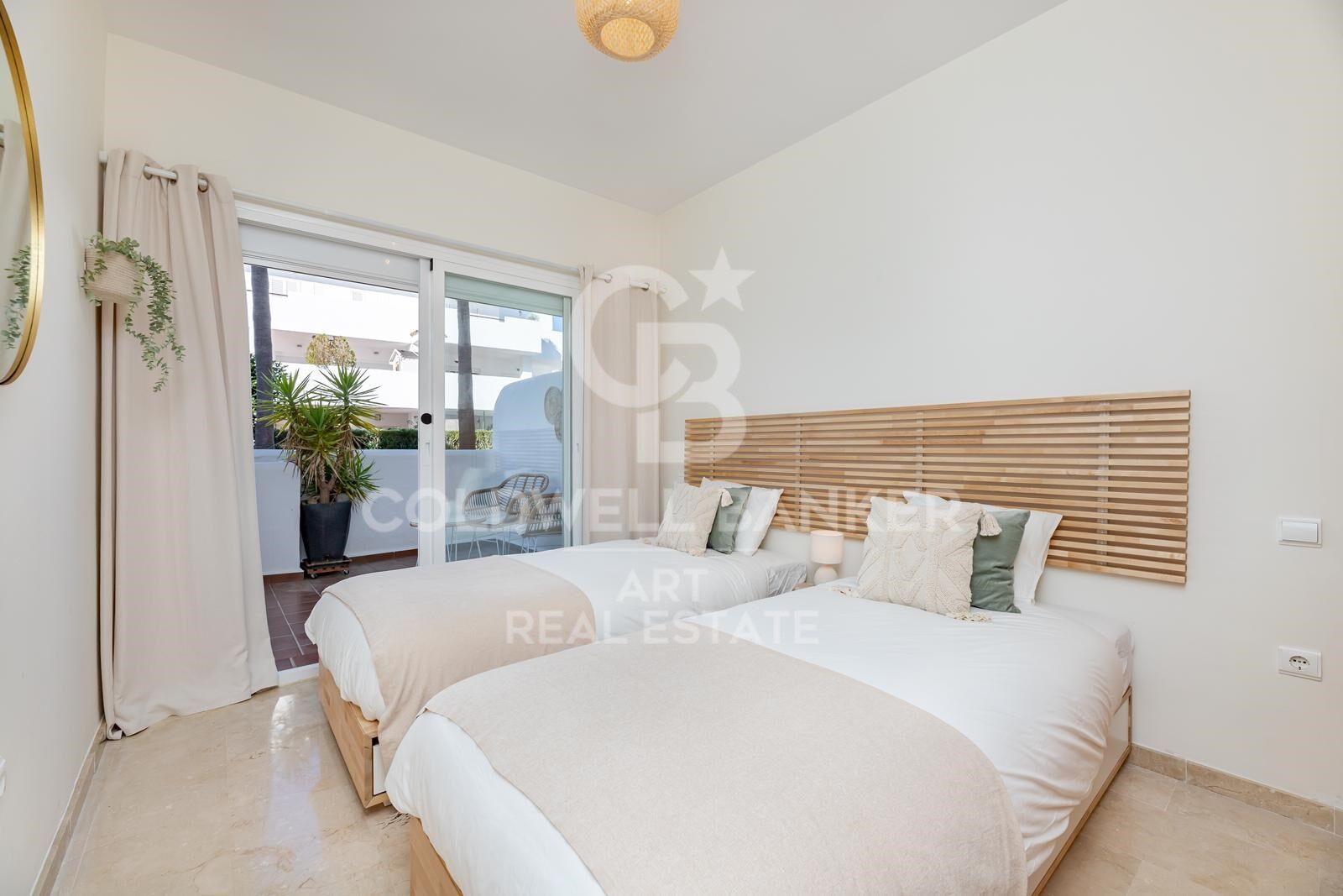 Cet appartement entièrement rénové, aux finitions haut de gamme, offre une vue imprenable orientée sud-ouest sur de luxuriants jardins subtropicaux et la mer Méditerranée. Conçu pour allier élégance et confort, il comprend trois chambres spacieuses et deux salles de bains modernes. La cuisine ouverte, au design contemporain, est équipée d'appareils allemands haut de gamme et s'intègre parfaitement dans un salon raffiné, doté de sols élégants, de mobilier moderne, d'une cheminée électrique et d'un système audio Bang & Olufsen. Une baignoire îlot et des placards sur mesure ajoutent une touche de luxe supplémentaire. La grande terrasse de 32 m², accessible depuis toutes les pièces, offre une vue panoramique ininterrompue s'étendant jusqu'aux côtes africaines. L'appartement est en parfait état et comprend une place de parking privée dans le garage souterrain ainsi qu'un local de rangement. Situé dans la résidence prestigieuse en bord de mer Los Granados del Mar, sur la Nouvelle Mille d'Or, les résidents bénéficient d'un accès direct à la plage et d'équipements exceptionnels : restaurant sur place, piscine intérieure chauffée, deux piscines extérieures, salle de sport, bain turc, sauna, jacuzzi et sécurité 24h/24. Entourée de magnifiques jardins paysagers, la communauté est idéalement située à proximité de toutes commodités, des meilleures écoles, restaurants haut de gamme, du nouveau complexe Laguna Village et du centre d'Estepona. #ref:CBSH880
