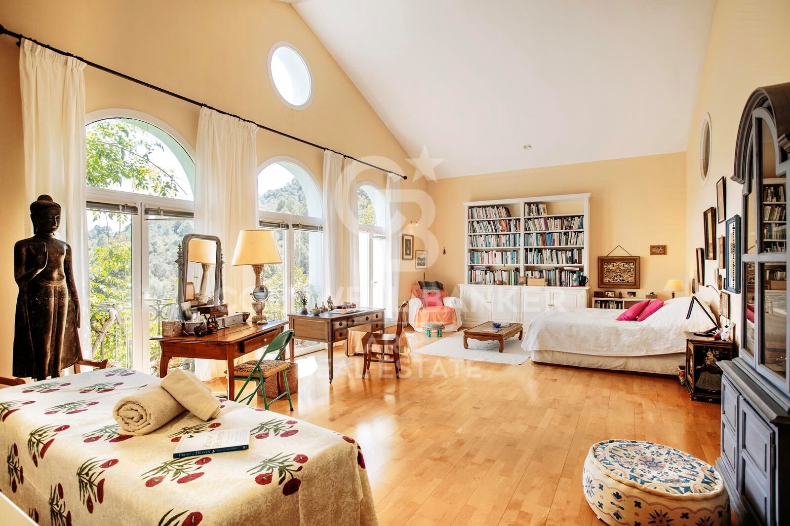 Une longue allée privée bordée de cyprès mène à la propriété, annonçant d'emblée la sérénité et l'élégance de cette demeure. La villa s'étend sur 1 009 m² répartis sur trois niveaux, comprenant 7 grandes chambres, chacune avec sa salle de bains en suite, ainsi qu'une salle de bains supplémentaire.