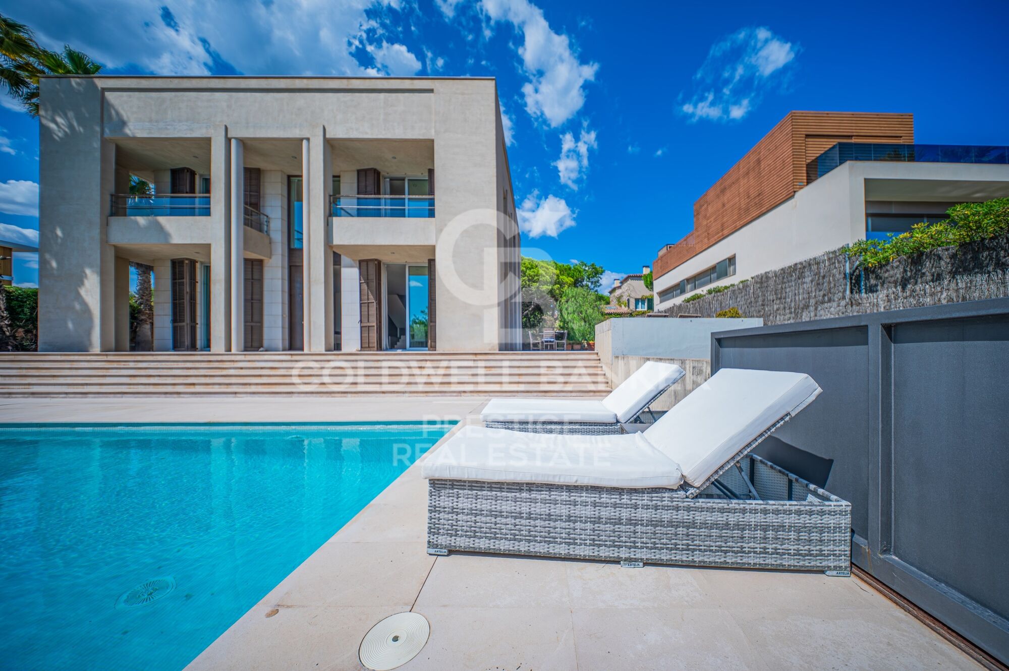 Il offre un total de 800 m2 construits et 6 pièces dont : 2 suites de 60 m2 avec studio intégré, dressing et grandes terrasses avec vue panoramique sur la mer, 2 chambres doubles avec salle de bain et 2 chambres avec salle de bain avec accès indépendant. Spacieux séjour-salle à manger avec bureau, toilettes et cuisine équipée semi-ouverte. Il dispose de 6 places de parking. Les frais d'entretien s'élèvent à 1000 euros.