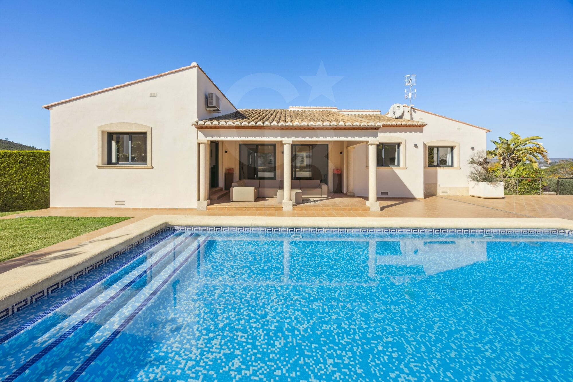 Avec une vue imprenable sur la campagne environnante et les montagnes, cette villa bénéficie d'un ensoleillement abondant toute l'année.