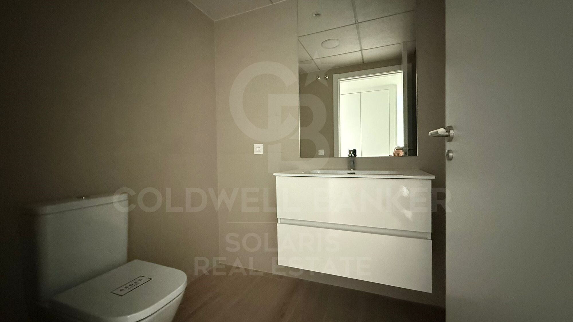 De plus, vous pouvez vous détendre sur la terrasse ou profiter des installations du complexe, qui comprennent une piscine et un jardin communs, une salle de sport, un sauna et un club social où vous pourrez rencontrer vos voisins. L'appartement dispose également d'un garage et d'un débarras, ce qui ajoute un confort supplémentaire à votre vie quotidienne. Avec 53 m² construits et une orientation sud qui garantit la lumière naturelle tout au long de la journée, cet appartement est parfait pour ceux qui apprécient la qualité de vie.