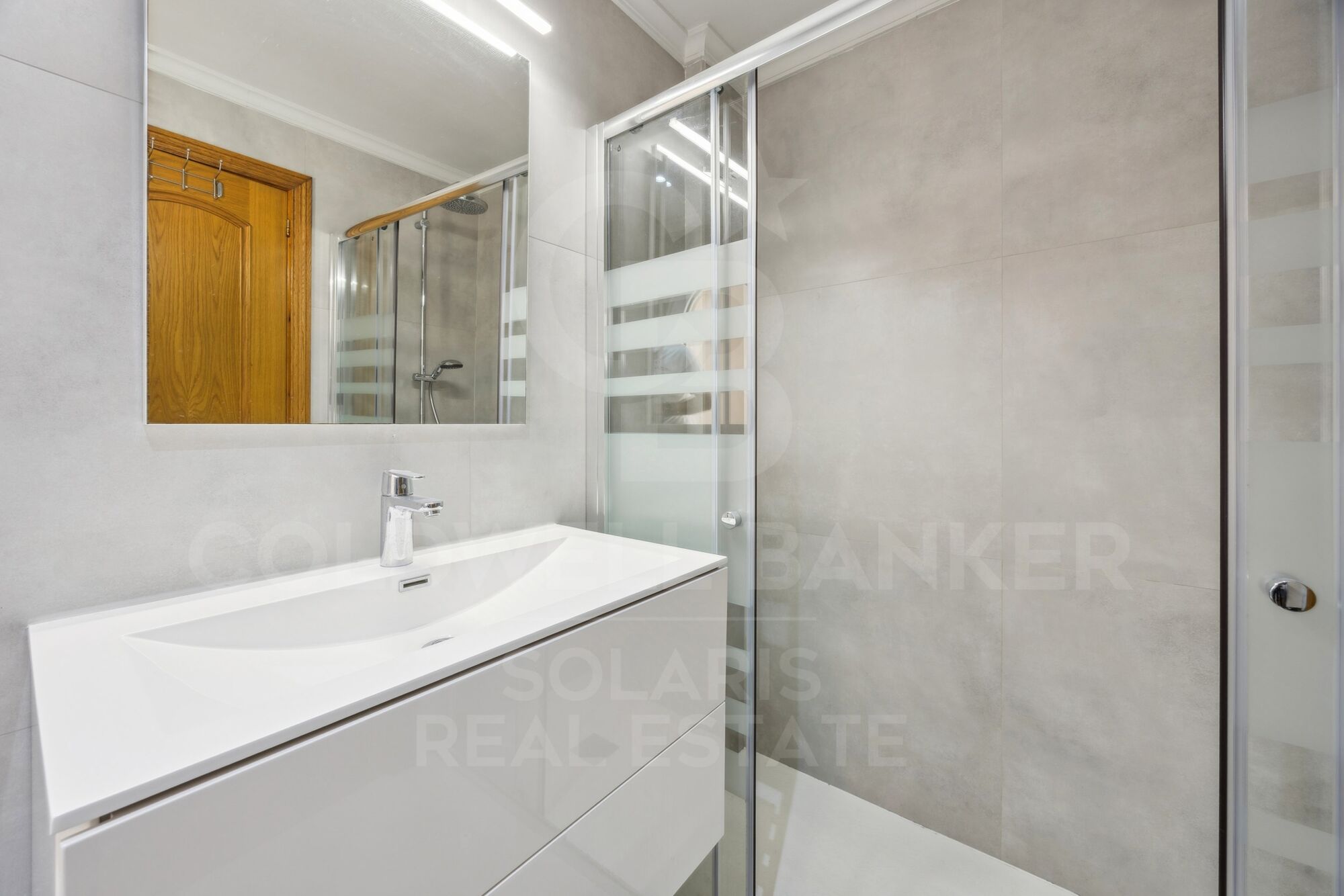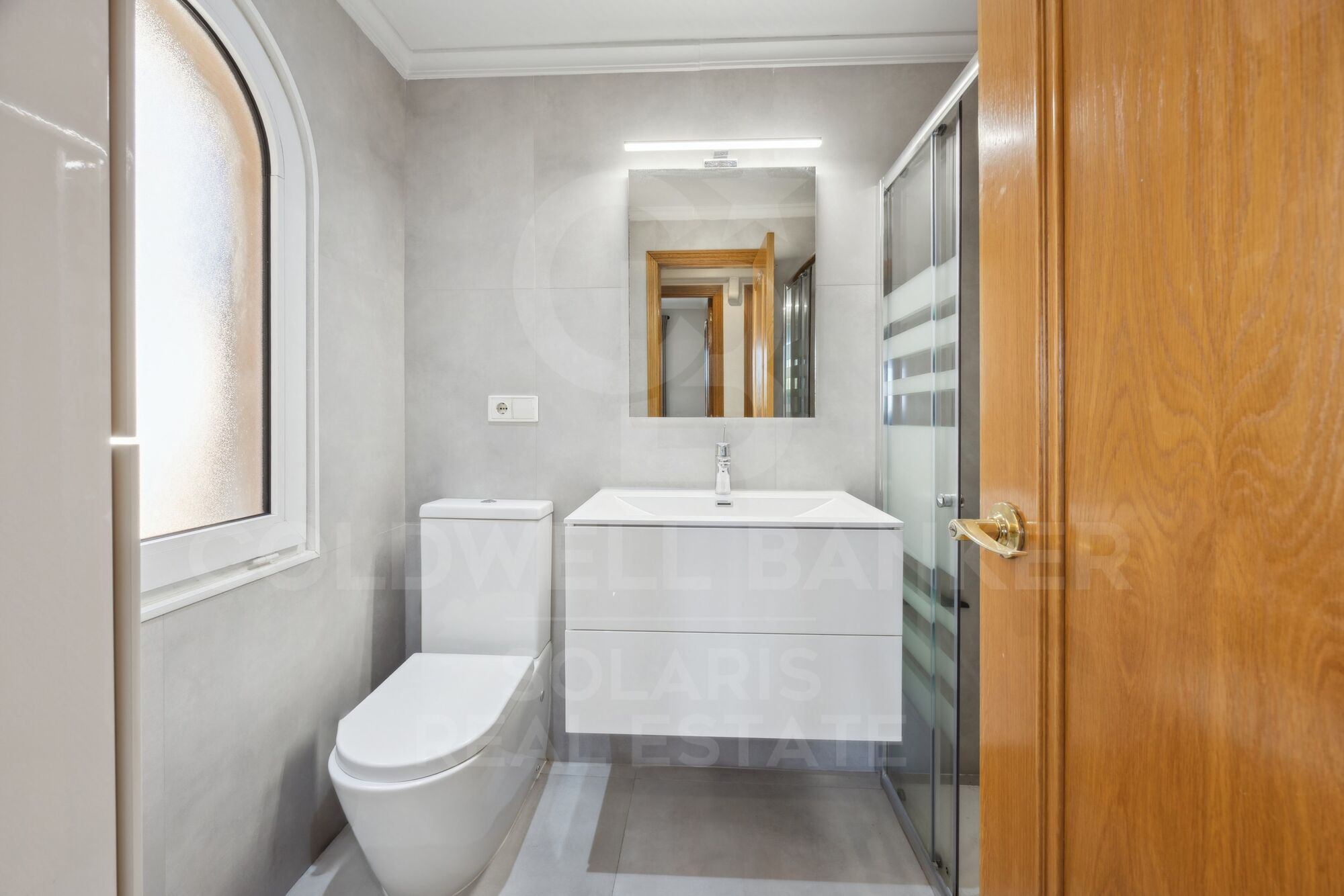 Située dans une urbanisation magnifiquement entretenue, la propriété bénéficie d'un accès à une piscine commune, à une salle de sport, à des jardins luxuriants, à des coins salon ombragés et à un service de conciergerie pour assurer la sécurité et l'entretien. Le sous-sol abrite un garage spacieux de plus de 50 m², offrant de la place pour plusieurs véhicules et de nombreuses options de rangement ou même pour en faire une chambre supplémentaire + salle de bain.