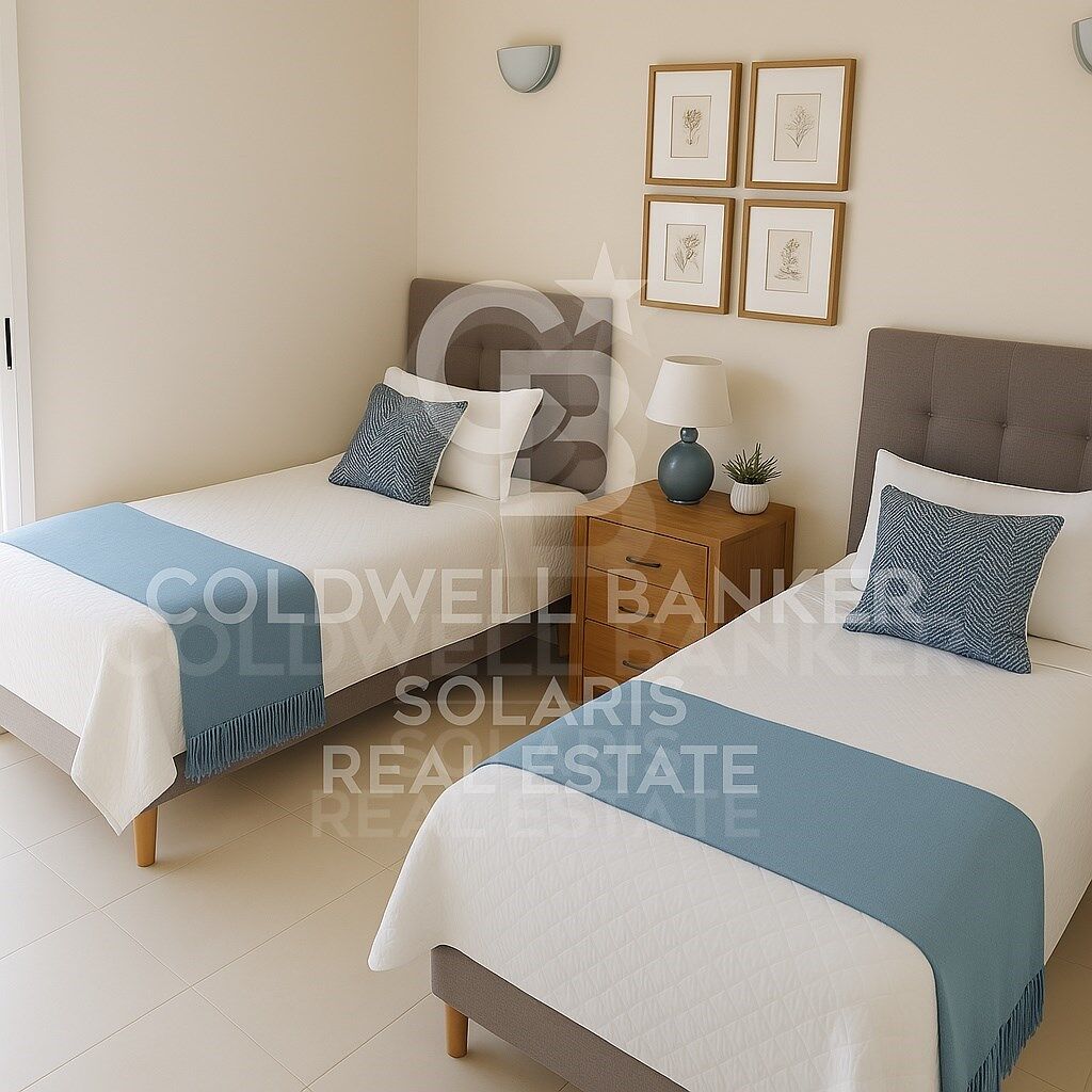 Ce superbe appartement en duplex de 4 chambres et 3 salles de bains est un excellent choix pour ceux qui recherchent une maison spacieuse, confortable et pleine de commodités. D'une superficie de 130 m², l'appartement offre un grand espace de vie, idéal pour les deux familles. La cuisine se distingue surtout par sa taille et sa fonctionnalité, permettant aux résidents de profiter d'une atmosphère agréable pour cuisiner et partager avec la famille. De plus, il dispose d'une terrasse privative de 20 m², exposée ouest, qui garantit une excellente exposition au soleil durant l'après-midi. Le complexe résidentiel dispose d'une grande variété d'installations et de services qui améliorent la qualité de vie de ses résidents. Il s'agit notamment d'un court de paddle-tennis pour les amateurs de ce sport, d'une salle de sport entièrement équipée pour rester en forme, d'une piscine pour profiter des beaux jours et d'une aire de jeux pour les plus petits dans la maison. Ces éléments font de cet appartement un choix idéal pour ceux qui apprécient le temps libre. En ce qui concerne le confort intérieur, l'appartement dispose de la climatisation, ce qui assure une atmosphère agréable à tout moment de l'année. De plus, il dispose d'un service de conciergerie qui apporte confort et sécurité au quotidien. L'appartement comprend également une place de parking et un débarras, ce qui augmente sa fonctionnalité. En bref, cet appartement en duplex offre non seulement un excellent agencement et des vues imprenables, mais aussi un grand nombre de services et d'équipements conçus pour faciliter la vie quotidienne. Sans aucun doute, c'est une option attrayante pour ceux qui recherchent la qualité, le confort et l'emplacement près de la mer. #ref:CBS451