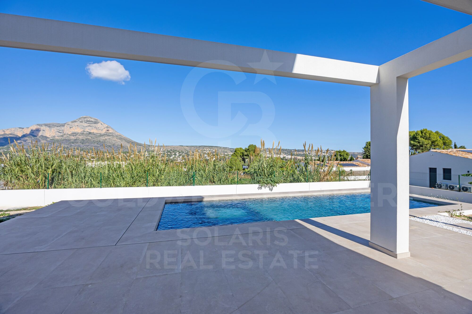 La villa dispose d'une piscine moderne de 4 x 10 mètres, parfaite pour se détendre et profiter du climat méditerranéen. Depuis la terrasse partiellement couverte, vous pourrez profiter d'une vue imprenable sur la montagne du Montgó, créant ainsi une atmosphère extérieure sereine.