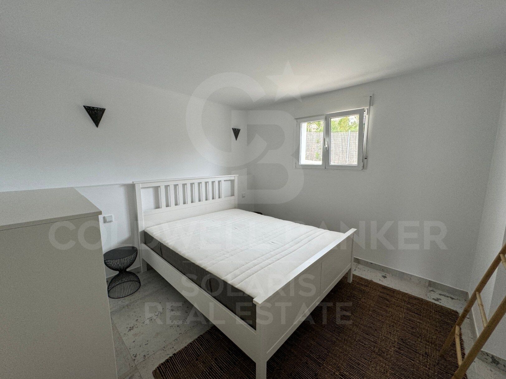 À un niveau supérieur, un hall confortable s'ouvre sur un spacieux salon-salle à manger décloisonné ; Les deux sont conçus pour maximiser la lumière naturelle, créant une atmosphère chaleureuse et accueillante. La cuisine, entièrement équipée avec de l'électroménager haut de gamme et un généreux îlot central, est l'endroit parfait pour profiter de moments en famille et entre amis. La villa dispose de la climatisation pour votre confort et d'une cheminée à bois qui ajoute une touche de chaleur pendant les mois les plus froids. De la cuisine, vous accédez à une charmante terrasse couverte, idéale pour contempler la vue sur la mer. Montez l'escalier en colimaçon qui vous mènera au solarium sur le toit, un espace parfait pour se détendre au soleil.