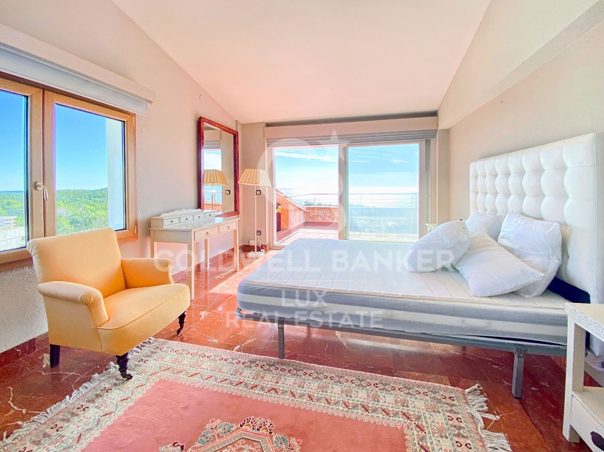 À l'étage, deux vastes suites parentales avec accès à une terrasse et des vues non seulement sur la mer, mais aussi sur le village de Llançà. L'étage se complète avec une chambre très lumineuse et un couloir ouvert sur la salle à manger.