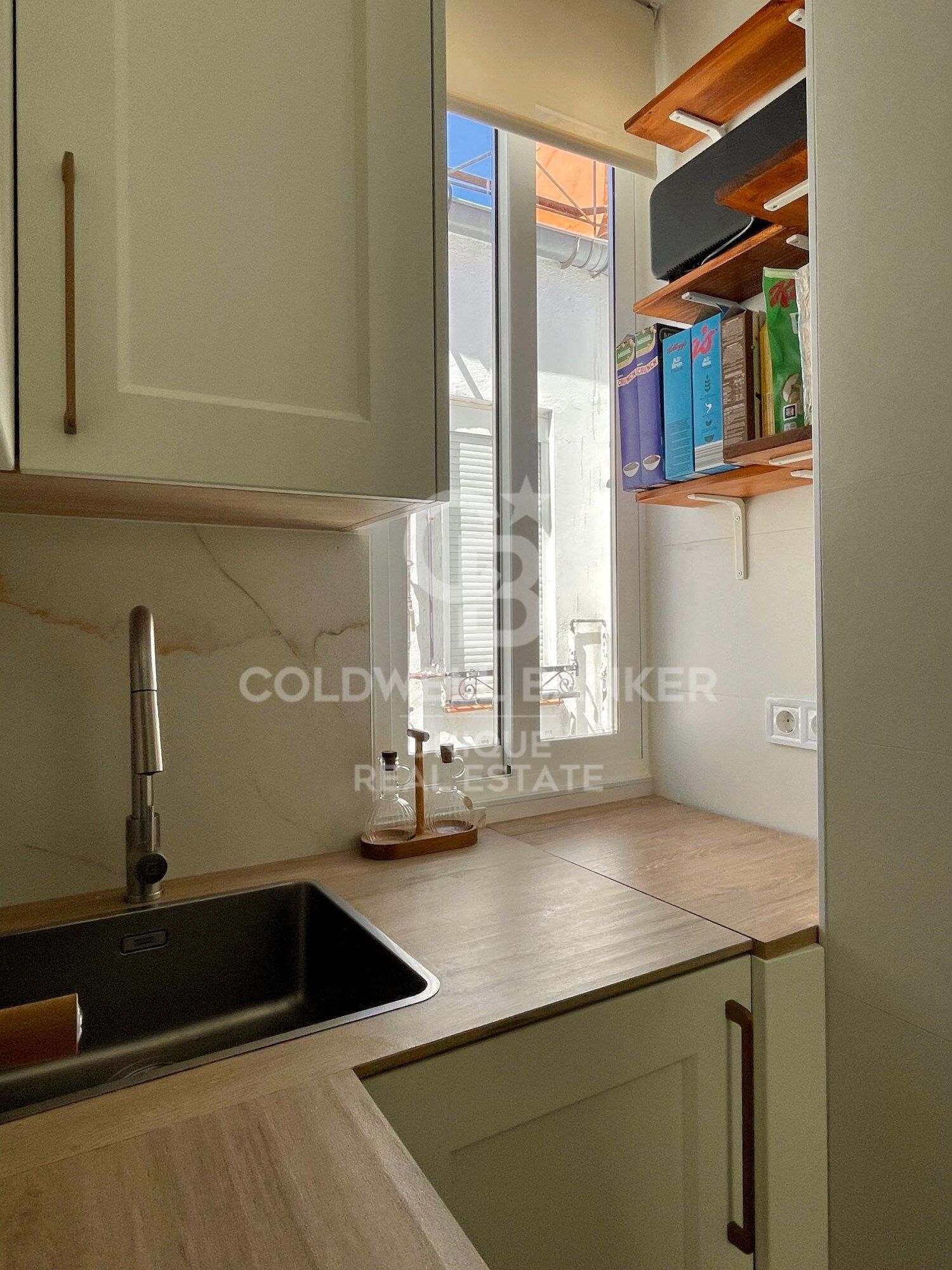 Entièrement rénové en 2024, il dispose d'un salon confortable avec cuisine ouverte, d'une chambre séparée avec salle de bains privative, de hauts plafonds et de finitions de grande qualité. Il dispose également de l'air conditionné avec pompe à chaleur, ce qui garantit un confort tout au long de l'année.