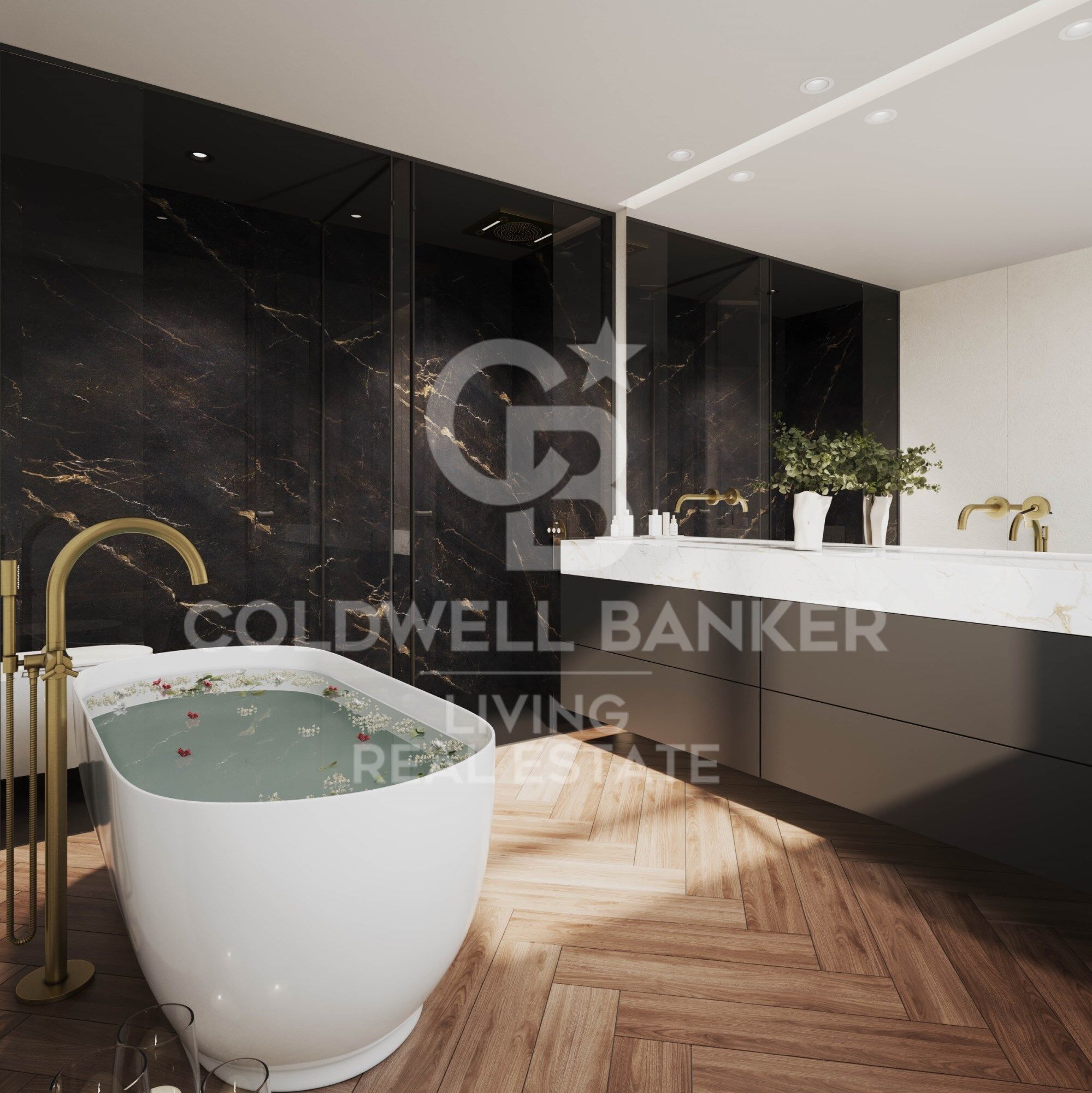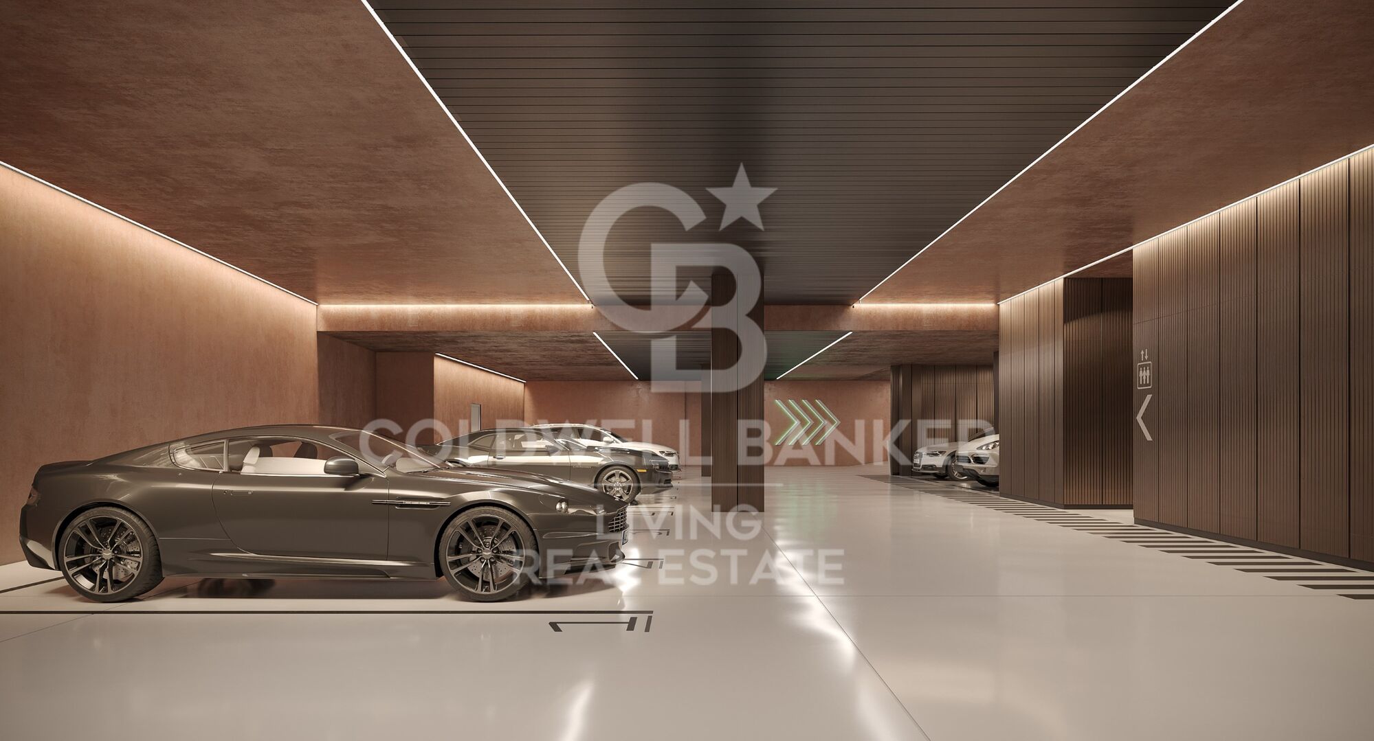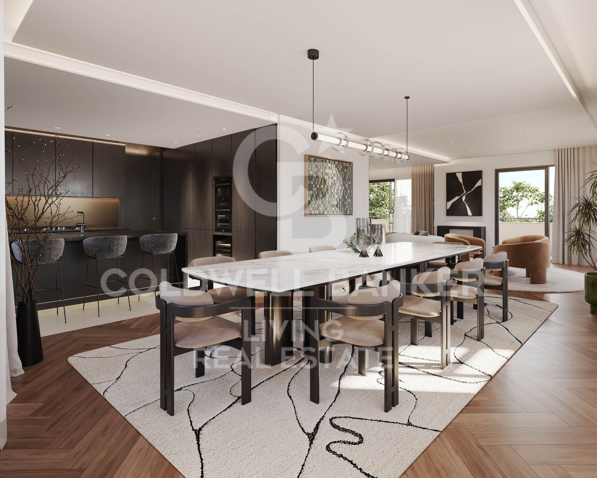 Materiales premium: suelos de nogal, gres porcelánico de gran formato, carpintería de alta gama