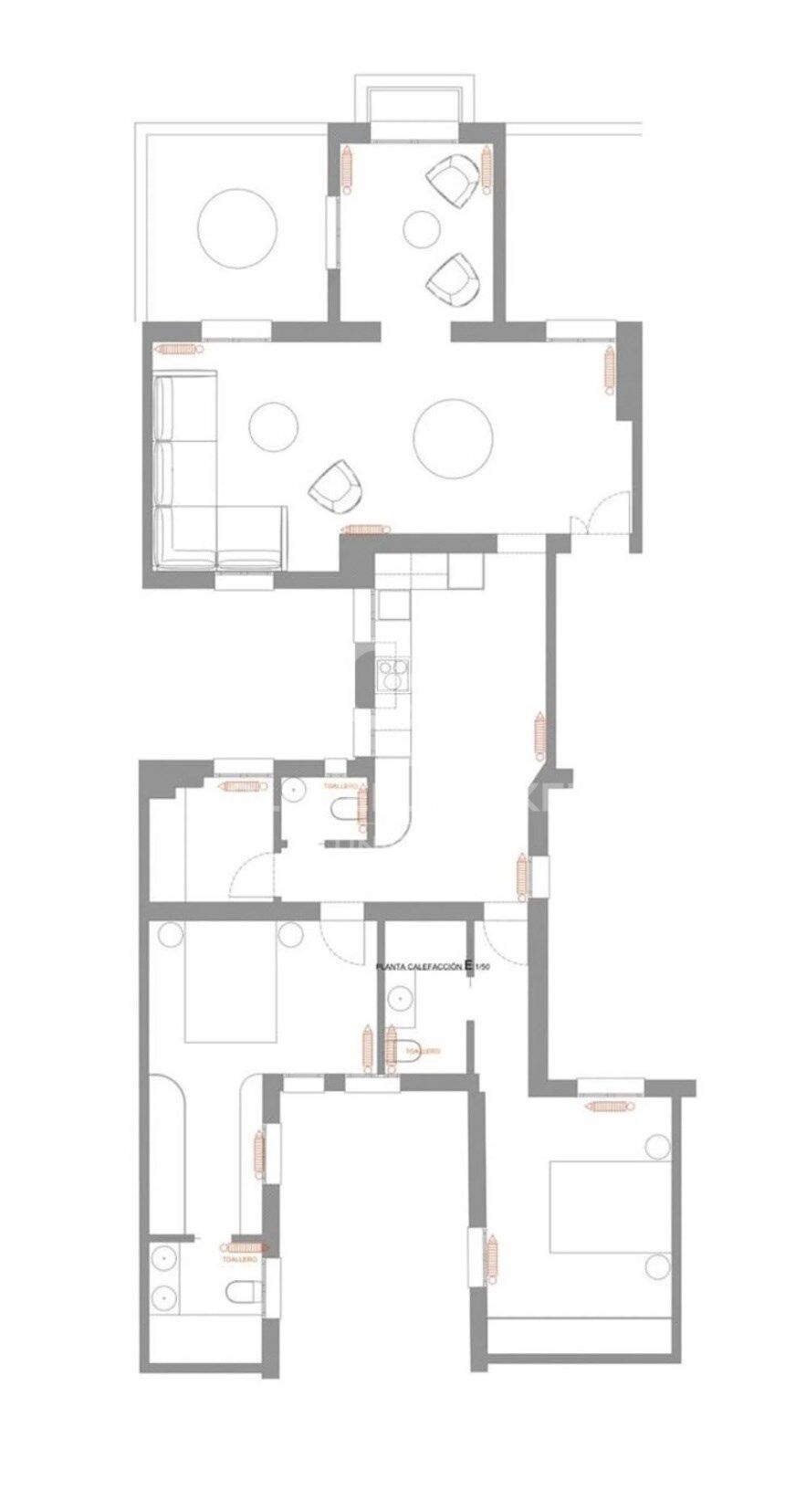 L'espace de vie s'organise autour d'un vaste salon avec accès direct à une agréable terrasse privée, idéale pour profiter de l'extérieur en plein centre de Madrid.